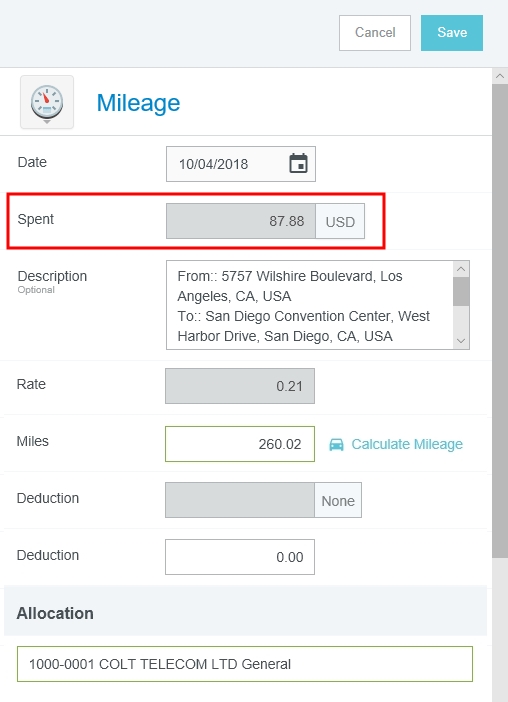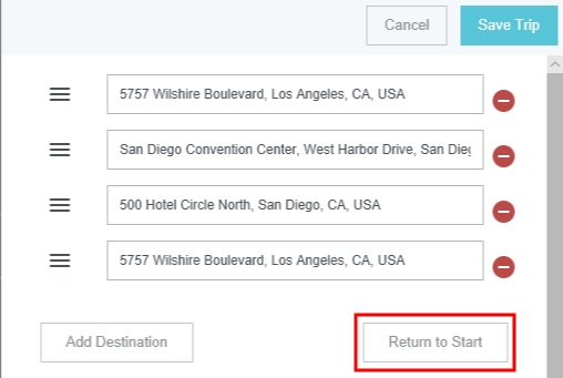 Fahrtkosten zu einem Bericht hinzufügen Benutzer, denen Fahrtkosten zurückerstattet werden, können die in Emburse Enterprise integrierte Google Maps-Funktion nutzen, um Entfernungen leichter zu berechnen. Fahrtkosten hinzufügen Klicken Sie im Mosaik zunächst auf die Kachel BODEN, dann auf KILOMETERSTAND. Geben Sie im Eingabefenster Fahrtkosten die von Ihrem Unternehmen angeforderten Informationen an. Wenn Ihr Unternehmen den Editor für mehrtägige Belegpositionen implementiert hat, haben Sie die Wahl zwischen der Auswahl eines einzelnen Tages oder mehrerer Tage. Die Felder Betrag und Satz können nicht bearbeitet werden. Das liegt daran, dass der Rückerstattungsbetrag von der Anzahl der Meilen, die Sie zurückgelegt haben, abhängt. Der Satz wird von Ihrem Unternehmen festgelegt. Geben Sie die Anzahl der gefahrenen Kilometer ein, oder klicken Sie auf KILOMETERSTAND BERECHNEN, um auf die integrierte Google-Maps-Funktion zuzugreifen. Sie müssen auf die Schaltfläche KILOMETER BERECHNEN klicken und die Reisedaten eingeben, damit der Kilometerstand automatisch berechnet wird. Durch ein Klicken auf die Adressenfelder erscheint eine Liste der zuletzt verwendeten Adressen, falls Sie in der Vergangenheit bereits Adressen angegeben haben. Alternativ können Sie auch mit der Eingabe eines Ortsnamens oder einer bestimmten Adresse beginnen. Google schlägt Ihnen dann passende Treffer vor. Entfernung und Karte werden aktualisiert, um Ihre genaue Route anzuzeigen. Die Funktion bietet ähnliche Navigationsfunktionen wie die Online-Version von Google Maps – einschließlich der Zoom-Steuerung. Um die Route zu ändern, bewegen Sie den Mauszeiger über die blaue Routenlinie, bis ein weißer Kreis angezeigt wird. Greifen Sie dann den Kreis und ziehen Sie ihn auf Ihre neue Route. Klicken Sie auf das Pfeile-Symbol, um die Reihenfolge Ihrer Reiseziele umzukehren. Klicken Sie auf ZIEL HINZUFÜGEN, um einen weiteren Aufenthalt auf Ihrer Reise hinzuzufügen. Verwenden Sie das graue Liniensymbol, um einen Standort zu greifen und ihn an eine andere Position in der Reihenfolge der Ziele zu verschieben. Verwenden Sie das rote Kreissymbol, um ein Ziel zu löschen. Wenn Sie auf ZU ANFANGSORT ZURÜCKKEHREN klicken, wird der erste Ort als neues Ziel unten in der Liste hinzugefügt. Klicken Sie auf REISE SPEICHERN, um zum Eingabefenster „Kilometerstand“ zurückzukehren. Sie werden feststellen, dass der Betrag unter „Ausgegeben“ automatisch berechnet wurde, die Beschreibung nun Zieladressen beinhaltet und der Satz ausgefüllt wurde. Persönlicher Fahrtkostenabzug Falls Ihr Unternehmen diese Funktion aktiviert hat, können Sie persönliche Fahrstrecken ganz einfach von einem Teil Ihrer Gesamtfahrtstrecke oder von dem Betrag Ihrer Standardstrecke abziehen. Geben Sie einfach die Anzahl der Meilen oder den Betrag in das Feld ABZUG ein. Klicken Sie auf den blauen SPEICHERN-Button, um die Fahrtkosten in Ihre Reisekostenabrechnung einzufügen. Autoplan Wenn Ihr Unternehmen diese Funktion für Fahrstreckenausgaben konfiguriert hat, finden Sie hier Autoplan-Ausgaben zu einem Bericht hinzufügen weitere Einzelheiten. Mehrtägige Belegpositionen Kilometerstand Falls Ihr Unternehmen Mehrtägige Belegpositionsausgaben erstellen aktiviert hat, können Sie dies nutzen, um Informationen für eine einzige Kilometerstand-Belegposition einzugeben, die dann auf mehrere Tage angewendet wird. Es werden somit mehrere Zeilen erzeugt. 1. Klicken Sie auf MEHRTÄGIG, um eine Datumsauswahl aufzurufen und die gewünschten Datumsangaben auszuwählen. 2. Geben Sie nun den Rest der Ausgabendaten ein und klicken Sie auf SPEICHERN. War dieser Beitrag hilfreich? Ja Nein