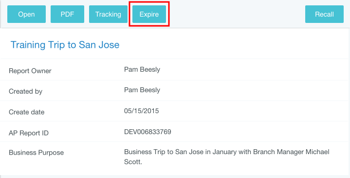 Vor-Genehmigung ablaufen lassen Bei Kunden mit Obligo-Budget-Funktion in Emburse Enterprise Pre-Approval wenden wir einem zuvor festgelegten Zeitplan entsprechend Multipel-Prüfungsregeln für Vorabgenehmigungen an, damit diese geschlossen (ablaufen gelassen) und die Mittel, die im Obligo stehen, freigegeben werden können. Benutzer mit den entsprechenden Berechtigungen können auch manuell eine genehmigte Vorabgenehmigung ablaufen lassen – etwa wenn eine geplante Reise abgesagt wird oder wenn eingeplante aber ungenutzte Mittel freigegeben werden müssen. Darüber hinaus können Benutzer mit diesen Berechtigungen Vor-Genehmigungen ablaufen lassen, wenn sie als Delegierte für andere Benutzer mit diesen Berechtigungen arbeiten. 1. Wählen Sie die genehmigte Vorabgenehmigung in der Liste eingereichter Vorgenehmigungen aus, um die Vorschau anzuzeigen. 2. Klicken Sie in der Vorschau auf ABLAUFEN LASSEN. Dieser Button wird nur in der Vorschau angezeigt und nicht, wenn Sie die Vor-Genehmigung öffnen. Auf kleinen Bildschirmen kann es sein, dass Sie zunächst das Symbol mit den drei Punkten anklicken und dann in der Dropdown-Liste „ABLAUFEN LASSEN“ auswählen müssen. 3. Klicken Sie im Bestätigungsfenster auf ABLAUFEN LASSEN. Die Vorabgenehmigung verbleibt in der Liste eingereichter Vorabgenehmigungen, kann jedoch nicht mehr mit einer Ausgabe verknüpft werden. War dieser Beitrag hilfreich? Ja Nein