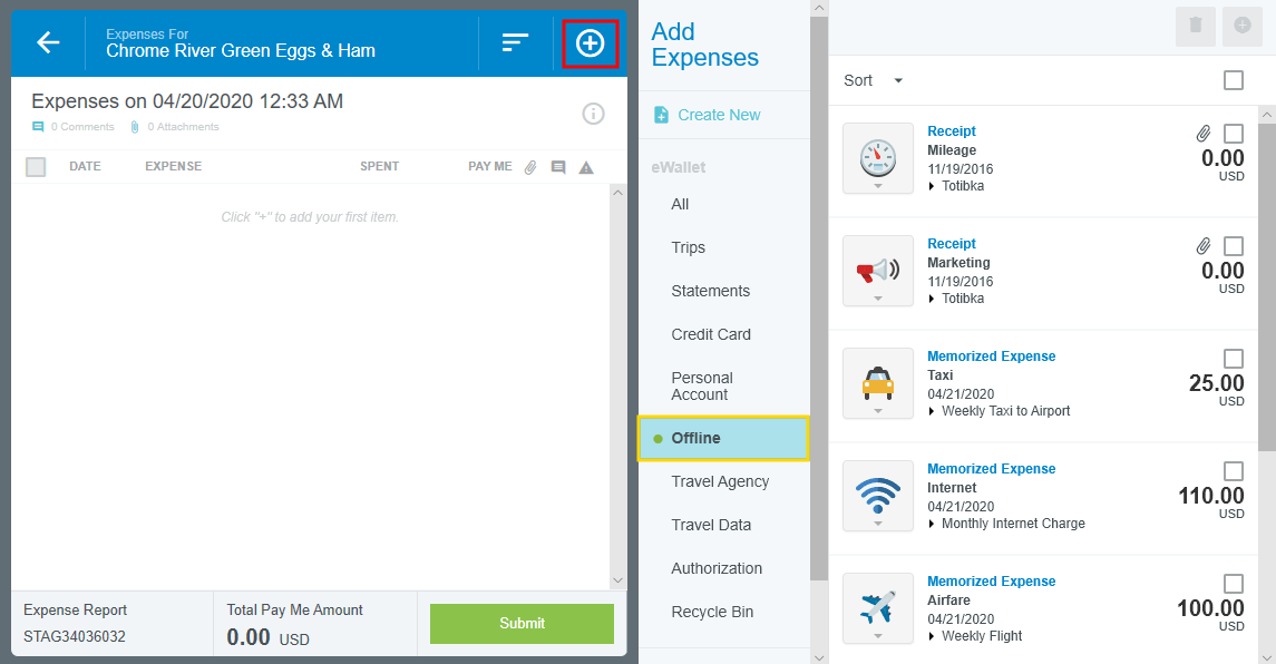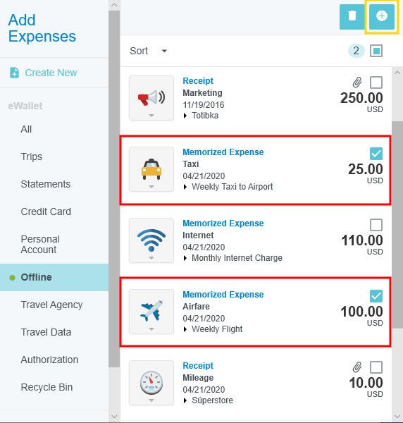Häufig verwendete Ausgaben merken Wenn Ihr Unternehmen diese Funktion aktiviert hat, können Sie häufig verwendete Ausgabenbelegpositionen „merken“, um diese leichter aus der E-Geldbörse in zukünftige Abrechnungen einzufügen. Wenn Sie zum Beispiel monatlich dieselbe Ausgabe für Internetgebühren erstellen, können Sie diese Belegposition merken und zur zukünftigen Verwendung als Offline-Transaktion in der E-Geldbörse anlegen. Beachten Sie, dass einzelne Ausgaben wie Hotels möglicherweise nicht gespeichert werden. Gemerkte Ausgabe erstellen 1. Nachdem Sie die zu merkende Belegposition gespeichert haben, klicken Sie auf die Schaltfläche MEHR (drei Punkte) in der Vorschau der Belegposition und wählen Sie AUSGABE MERKEN. 2 Sie werden gebeten, die gemerkten Ausgaben zu benennen, damit Sie sie in Zukunft leicht finden können. Klicken Sie anschließend auf ERSTELLEN. 3 Die Ausgaben werden nun im Offline-Bereich der eWallet für die zukünftige Verwendung gespeichert. Gemerkte Ausgaben zum Bericht hinzufügen 1. Klicken Sie auf den Plus-Button (+), um eine Belegposition hinzuzufügen, und dann in der eWallet auf OFFLINE. 2 Suchen Sie die gewünschten gemerkten Ausgaben und klicken Sie auf die Kontrollkästchen, um diese auszuwählen. Klicken Sie dann auf die Schaltfläche HINZUF. oder auf den PLUS-Button (+). 3 Jede gemerkte Ausgabe öffnet sich im Bearbeitungsmodus und Sie können alle nötigen Anpassungen vornehmen und die Belegposition im neuen Bericht speichern. 4. Die ursprüngliche gemerkten Ausgaben bleiben zur weiteren Verwendung in der eWallet. War dieser Beitrag hilfreich? Ja Nein