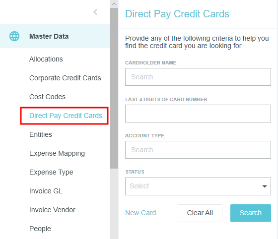 DIRECT PAY-Kreditkarten Ihr Unternehmen kann per Direktzahlung (DIRECT PAY) Erstattungen von Reisekosten an Benutzer und Firmenkreditkarten vornehmen. DIRECT PAY-Erstattungen werden direkt auf das Bankkonto des Benutzers gezahlt, und der Gesamtbetrag, der an die Benutzer gezahlt wird, wird vom angegebenen Bankkonto des Unternehmens überwiesen. Wenn eine Firmenkreditkarte mit den Reisekosten des Benutzers verknüpft ist, können Gelder zur Zahlung der Kreditkartengebühr direkt vom angegebenen Firmenbankkonto überwiesen werden, und die Gutschrift erscheint auf der Monatsrechnung für die Karte. DIRECT PAY kann so konfiguriert werden, dass Erstattungsbeträge für Mitarbeiter automatisch angepasst werden, wenn eine Spesenabrechnung persönliche Belastungen auf einer vom Unternehmen bezahlten Firmenkreditkarte enthält. Wenn eine Ausgabe einer persönlichen Zuordnung zugewiesen ist, wird der persönliche Betrag vor der Auszahlung von der Erstattung abgezogen. Dadurch wird sichergestellt, dass Ihre Organisation dem Mitarbeiter keine Erstattung für persönliche Ausgaben auf einer Firmenkreditkarte leistet, und es ist kein separater Rückzahlungsprozess oder eine zusätzliche Einrichtung bei Emburse erforderlich. Einrichten von DIRECT PAY Um zu beginnen, erstellen Sie ein Support-Ticket, um DIRECT PAY anzufordern. Sobald Ihr Unternehmen eingerichtet ist, konfiguriert und verwaltet der Systemadministrator oder die Kreditorenbuchhaltungsabteilung die DIRECT PAY-Kreditkarteninformationen in Emburse Enterprise, einschließlich der Möglichkeit, Erstattungen von mehreren Bankkonten des Unternehmens an Benutzer auszuzahlen. Benutzer müssen ihre eigenen Bankkontoinformationen hinzufügen – siehe Ihr Bankkonto für Ausgabenerstattungen verwalten für weitere Informationen. Verwalten von DIRECT PAY -Kreditkarten Benutzer mit den entsprechenden Berechtigungen können Firmenkreditkarten, die über das DIRECT PAY-Verfahren bezahlt werden sollen, hinzufügen, bearbeiten oder löschen. Klicken Sie ADMIN EINSTELLUNGEN > STAMMDATEN > DIRECT PAY -KREDIT KARTEN. Suche nach DIRECT PAY-Kreditkarten Verwenden Sie die Filter, um Ihre Suchergebnisse einzugrenzen. Name des Karteninhabers Letzte 4 Stellen der Kartennummer Kontotyp: Wählen Sie den gewünschten Kreditkarten-Feed aus. Status „Ausstehend“ gibt Karten zurück, denen keine Benutzer zugeordnet sind. Geben Sie die gewünschten Parameter ein und klicken Sie auf SUCHE. Verwenden Sie die Schaltfläche FILTER HINZUFÜGEN, um die Suche weiter einzugrenzen. DIRECT PAY-Kreditkarte hinzufügen 1. Klicken Sie auf NEUE KARTE im Bildschirm „DIRECT PAY-Kreditkarten“, oder klicken Sie im Suchergebnisbildschirm auf HINZUF.. 2. Verwenden Sie die Dropdown-Menüs, um nach dem Namen des Karteninhabers und dem Kontotyp zu suchen, geben Sie dann die Kartennummer ein und klicken Sie auf SPEICHERN. DIRECT PAY-Kreditkarte bearbeiten 1. Wählen Sie die gewünschte Kreditkarte aus und klicken Sie auf BEARBEITEN. 2. Sie können die Dropdown-Liste verwenden, um den gewünschten Namen des Karteninhabers auszuwählen oder die Kartennummer zu bearbeiten. Es ist nicht möglich, den Kontotyp zu bearbeiten. 3. Wenn Sie fertig sind, klicken Sie auf SPEICHERN. DIRECT PAY-Kreditkarte löschen 1. Wählen Sie die gewünschte Kreditkarte aus und tippen Sie auf LÖSCHEN. 2. Sie müssen das Löschen noch einmal bestätigen, indem Sie das Wort „LÖSCHEN“ eingeben. Klicken Sie dann auf die Schaltfläche LÖSCHEN. DIRECT PAY-Kreditkartendaten exportieren Die EXPORT-Schaltfläche oben auf dem Bildschirm erstellt eine Microsoft-Excel-Datei mit allen aktuellen Ergebnissen auf dem Bildschirm „DIRECT PAY-Kreditkarten“. Wenn gewünscht, verwenden Sie die Suchfilter, um die Ergebnisse einzuschränken, bevor Sie auf EXPORT klicken. Exportieren Sie DIRECT PAY -Ausgaben Weitere Einzelheiten zum Export von DIRECT PAY-Ausgaben finden Sie im Administrationsbildschirm DIRECT PAY-Exporte. DIRECT PAY-Zahlungsplan Tag 1: Der Administrator führt einen DIRECT∘PAY-EXPORT vor 15:30 Uhr ET durch. Tag 2: Das Geld kommt beim Zahlungspartner von Emburse Enterprise an. Tag 3: Der Empfang des Geldes wird bestätigt. Emburse Enterprise sendet die ACH- oder REIM-Datei, um Ihre Benutzer zu bezahlen. Tag 4: Das Geld steht auf Benutzerkonten zur Verfügung. War dieser Beitrag hilfreich? Ja Nein