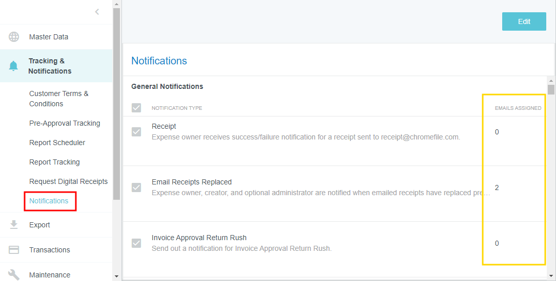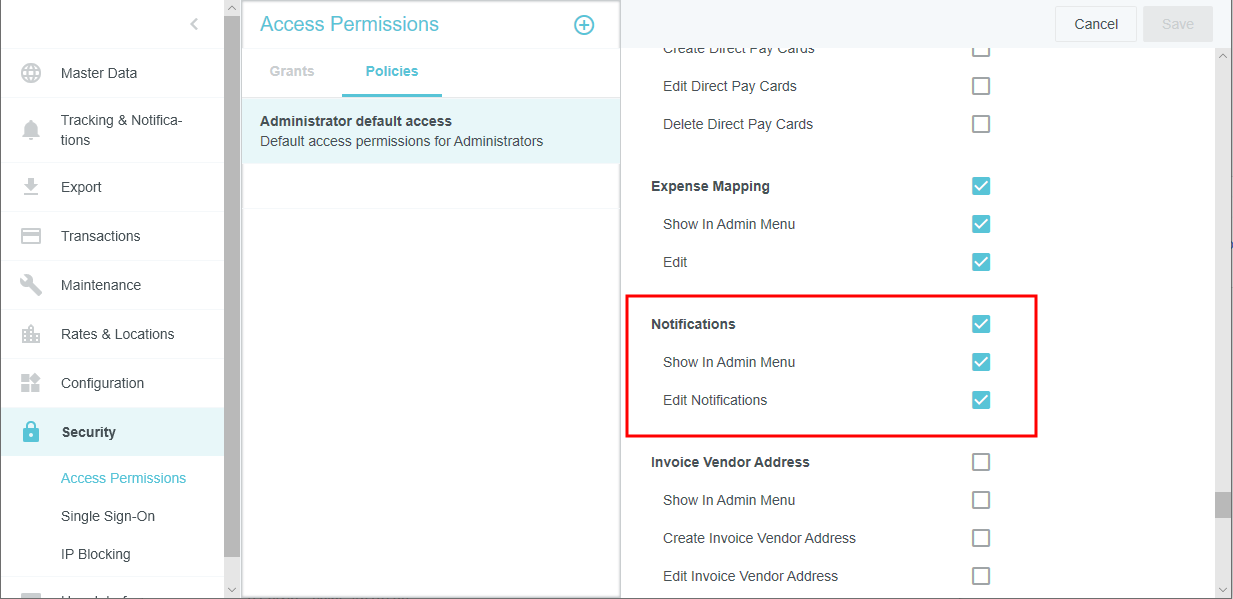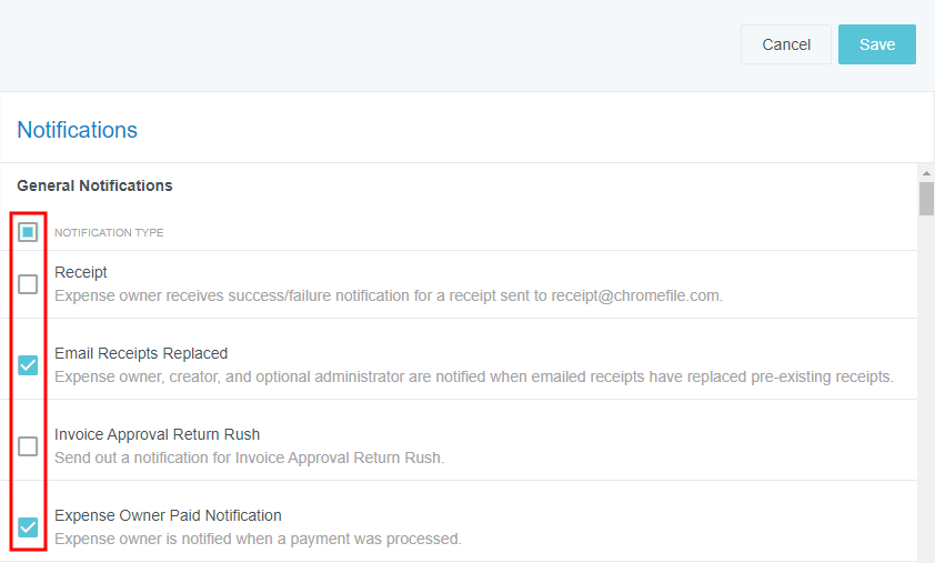 Admin – Benachrichtigungen Das Fenster „Benachrichtigungen“ listet alle Verfügbare E-Mail-Benachrichtigungen auf und ermöglicht es Administratoren, E-Mail-Benachrichtigungen unternehmensweit zu aktivieren oder zu deaktivieren. Benutzer steuern ihre eigenen Abonnements über den Bereich Benachrichtigungseinstellungen ihres Einstellungsmenüs. Administratoren können das Menü „Benachrichtigungen“ jedoch verwenden, um zusätzliche Abonnenten für jede Benachrichtigung hinzuzufügen oder zu entfernen. Klicken Sie auf ADMIN-EINSTELLUNGEN > TRACKING & BENACHRICHTIGUNGEN > BENACHRICHTIGUNGEN. In der Spalte Zugewiesene E-Mail-Adressen werden die zusätzlichen Abonnenten aufgelistet, die ein Administrator jeder Benachrichtigung zugewiesen hat. Verwaltungsmenü „Benachrichtigungen“ aktivieren Administratoren mit den entsprechenden Berechtigungen können den Verwaltungsbildschirm für Benachrichtigungen aktivieren, indem sie zu ADMIN-EINSTELLUNGEN > SICHERHEIT > ZUGRIFFSBERECHTIGUNGEN navigieren und die entsprechende Richtlinie bearbeiten. E-Mail-Benachrichtigungen aktivieren oder deaktivieren Standardmäßig sind alle E-Mail-Benachrichtigungen für das gesamte Unternehmen aktiv. Die Deaktivierung einer Benachrichtigung im Verwaltungsbildschirm für Benachrichtigungen schaltet diese unabhängig von den Entscheidungen aus, die Benutzer in ihrem Benachrichtigungseinstellungen-Benutzerbildschirm treffen. Die Aktivierung einer Benachrichtigung im Verwaltungsbildschirm für Benachrichtigungen führt dazu, dass alle Benutzer die Benachrichtigung erhalten, sofern sie sich nicht in ihrem Benachrichtigungseinstellungen-Benutzerbildschirm davon abmelden. 1. Klicken Sie oben im Benachrichtigungsmenü auf BEARBEITEN. 2 Markieren Sie die gewünschten Benachrichtigungen oder heben Sie die Markierung auf, um diese zu aktivieren oder zu deaktivieren. Durch Anklicken von BENACHRICHTIGUNGSART unter der Kategorieüberschrift werden alle Benachrichtigungen in dieser Kategorie aktiviert oder deaktiviert. 3 Wenn Sie fertig sind, klicken Sie auf SPEICHERN. Zusätzliche Abonnenten anzeigen und bearbeiten Wenn Sie mit der Maus über eine Benachrichtigung in der Liste fahren, erscheint ein ANZEIGEN-Link. Klicken Sie darauf, um die vollständige Liste der zusätzlichen Abonnenten anzuzeigen. Um weitere Abonnenten zu entfernen, klicken Sie auf das X links neben deren E-Mail-Adressen. Um einen Abonnenten hinzuzufügen, geben Sie die E-Mail-Adresse in das Feld ein und klicken Sie auf HINZUFÜGEN. Wenn Sie fertig sind, klicken Sie auf SCHLIESSEN. War dieser Beitrag hilfreich? Ja Nein