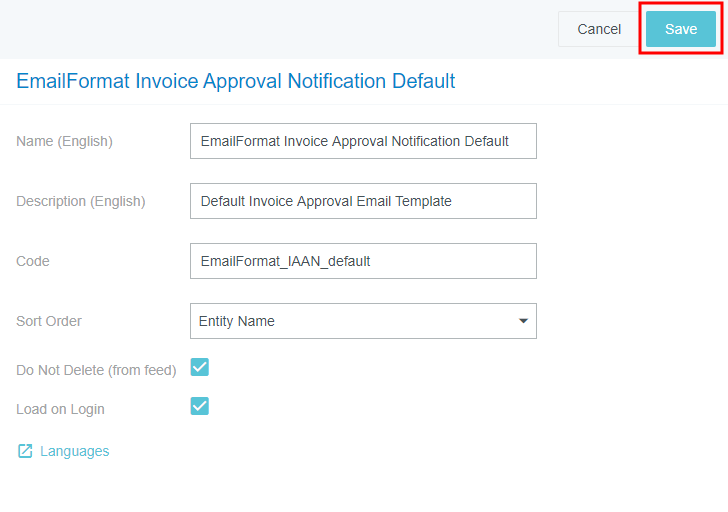 HTML-E-Mail-Vorlagen für Rechnungsgenehmigungen konfigurieren Genehmiger erhalten E-Mail-Benachrichtigungen für jede Rechnung, der sie zugewiesen wurden. Emburse Enterprise bietet die HTML-Version dieser Rechnungsgenehmigungs-E-Mails in drei Formaten an: E-Mail „Komplettgenehmigung“, E-Mail „Mittlere Genehmigung“ und E-Mail „Geringe Genehmigung“. Weitere Einzelheiten zu jeder einzelnen Vorlage finden Sie hier: Bitte beachten Sie, dass HTML unter Verwaltungsmenü „Geschäftsregeln“ aktiviert sein muss, damit der Benutzer E-Mails auf Basis dieser Vorlagen erhalten kann. Über das Verwaltungsmenü „Geschäftsregeln“ in Emburse Enterprise können Sie auswählen, welche Art von HTML-E-Mails Ihre Benutzer für alle Arten von Benachrichtigungen erhalten. Sie können auch den Text der Anweisungen und der Fußzeile anpassen. Benachrichtigungstypen Es gibt vier verschiedene Arten von E-Mail-Benachrichtigungen, von denen jede mit einer der drei in Verwaltungsmenü „Geschäftsregeln“ beschriebenen Vorlagen formatiert werden kann. Sie richten die Standardvorlage im nächsten Abschnitt ein,E-Mail-Listentyp Genehmigung erstellen. Schritt 5 dieses Abschnitts listet die Listentypen-Codes auf, die Sie benötigen, um die anderen unten aufgeführten E-Mail-Benachrichtigungstypen zu erstellen. HINWEIS: Ihre Organisation muss Regeln für die hinzuzufügenden Benachrichtigungstypen festlegen. Weitere Informationen über alle Standardberichte finden Sie in dem Artikel Verwaltungsmenü „Geschäftsregeln“. Standard: Benachrichtigt Benutzer darüber, dass ihnen eine Rechnung zugewiesen wurde. Zusätzlicher Genehmiger: Benachrichtigt Benutzer darüber, dass sie einer Rechnung als zusätzlicher Genehmiger zugewiesen wurden. Rücksendung Benachrichtigt Benutzer darüber, dass eine Rechnung zurückgewiesen und an sie zurückgesendet wurde. Online: Benachrichtigt Benutzer darüber, dass eine Rechnung online via Emburse Invoice Enterprise genehmigt werden muss, da sie nicht via E-Mail genehmigt werden kann. Online-Zurückweisung: Benachrichtigt Benutzer darüber, dass eine Rechnung an sie zurückgesendet wurde, und informiert den Benutzer, dass er sich in der App anmelden muss, um die Rechnung zu genehmigen oder zurückzuweisen. Verwenden Sie diese Option, wenn Sie möchten, dass sich der Genehmiger bei der Anwendung anmeldet. Dringende Anfragen Jede dieser Benachrichtigungen ist auch in einer „Eil“-Version für Rechnungen verfügbar, die sofortiges Handeln erfordern. E-Mail-Listentyp Genehmigung erstellen Bevor Sie die verschiedenen Arten von Benachrichtigungen konfigurieren können, müssen Sie alle diejenigen erstellen, die Sie als Listentypen in Emburse Enterprise benötigen. 1. Klicken Sie im Anwendungsmenü auf ADMIN-EINSTELLUNGEN > STAMMDATEN > LISTEN. 2. Verwenden Sie das Suchfeld, um zu sehen, ob der erforderliche Listentyp „Standard-E-Mail-Format Benachrichtigungen Rechnungsgenehmigungen“ (Code: EmailFormat_IAAN_default) für Ihr Unternehmen bereits vorhanden ist. Sollte dies der Fall sein, gehen Sie zu Schritt 5. Ansonsten fahren Sie mit Schritt 3 fort. 3. Klicken Sie auf den blauen Plus-Button (+), der rechts neben „Listentypen“ steht, und geben Sie folgende Informationen ein: Name: Standard-E-Mail-Format Benachrichtigungen Rechnungsgenehmigungen Beschreibung: Standard-E-Mail-Vorlage für Rechnungsgenehmigungen Code EmailFormat_IAAN_default Sortierreihenfolge: Benutzen Sie das Drop-down-Menü Sortierreihenfolge, um die Reihenfolge der Listentypen zu ändern. Sie können nach Listenname, Listencode oder Sortierreihenfolge sortieren. 4. Kreuzen Sie das Kästchen Nicht löschen (aus Feed) an, klicken Sie dann im Pop-up-Fenster auf ÜBERNEHMEN und klicken Sie abschließend auf SPEICHERN. Weitere Informationen über die Sprachoptionen finden Sie unter Sprachen für Listentypen hinzufügen und bearbeiten. 5. Nachdem Sie nun die standardmäßige E-Mail-Benachrichtigungsvorlage für die Rechnungsgenehmigung erstellt haben, können Sie die gleichen Schritte mithilfe der unten aufgeführten Listentypen-Codes ausführen, um zusätzliche Vorlagen zu erstellen. BENACHRICHTIGUNGSART LISTENTYPEN-CODE E-Mail Rechnung Standardgenehmigung EmailFormat_IAAN_default E-Mail Rechnung Zusatzgenehmigung EmailFormat_IAAN_additionalAppr E-Mail Rechnung Online-Genehmigung EmailFormat_IAAN_online E-Mail Rechnung zusätzliche Eil-Genehmigung EmailFormat_IAAR_additionalAppr E-Mail Rechnung Standard-Eil-Genehmigung EmailFormat_IAAR_default E-Mail Rechnung Online-Eil-Genehmigung EmailFormat_IAAR_online E-Mail Rechnung Online-Rücksendegenehmigung EmailFormat_IARN_onlinereturn E-Mail Rechnung Zusätzliche Rücksendegenehmigung EmailFormat_IARN_return E-Mail Rechnung Online-Eil-Rücksendegenehmigung EmailFormat_IARR_onlinereturn E-Mail Rechnung Zusätzliche Eil-Rücksendegenehmigung EmailFormat_IARR_return HTML-E-Mail-Format für Rechnungsgenehmigung auswählen Nachdem nun alle Listentypen erstellt wurden, können Sie jedem von ihnen einen der drei folgenden Verwaltungsmenü „Geschäftsregeln“ zuweisen: Email „Komplettgenehmigung“, E-Mail „Mittlere Genehmigung“ oder E-Mail „Geringe Genehmigung“. 1. Klicken Sie auf den gewünschten Listentyp. Klicken Sie in der unteren Hälfte des Bildschirms – im Listentyp-Diagramm – auf den blauen Plus-Button (+). 2. Fügen Sie folgende Liste hinzu: Name: Komplett Code: TemplateName Extradaten 1: Der Wert, den Sie hier eingeben (oder nicht eingeben), bestimmt, welche der drei HTML-E-Mail-Vorlagen für die Rechnungsgenehmigung Ihre Benutzer für diesen Benachrichtigungstyp erhalten. Wählen Sie eine der folgenden Optionen. E-Mail-Vorlage Komplettgenehmigung (Standard): Lassen Sie das Feld „Extradaten 1“ leer E-Mail-Vorlage Mittlere Genehmigung: Mittel E-Mail-Vorlage Geringe Genehmigung: Gering Kreuzen Sie das Kästchen Nicht LÖSCHEN (aus Feed) an, lassen Sie die anderen Felder leer, und klicken Sie abschließend auf SPEICHERN. Anweisungen benu