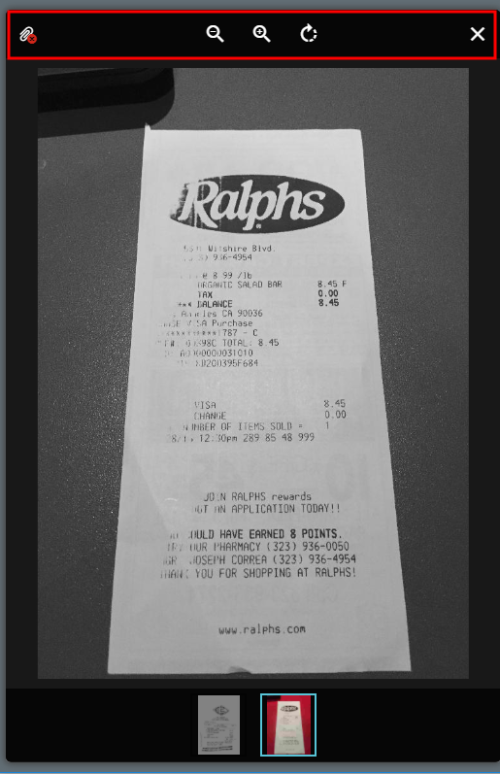Add Receipt Images to Expenses You may attach images to an expense while you are creating it or after it has been created. Images may be uploaded directly through the application, emailed, or added via the Emburse Enterprise or CR SNAP mobile apps. For a complete list of receipt submission methods, see All Methods for Adding Receipts as an Expense Owner or a Delegate. The quickest way to create a new expense in Emburse Enterprise is to upload a receipt to the Receipt Gallery and create a new expense from it. Emburse AI will extract key data from the receipt and automatically add it to the expense, reducing the amount of data you need to enter manually. Only JPG, PDF, PNG, OFD, and TIFF files can be accepted when an image is attached via the Emburse Enterprise app. Only JPG, PNG, and HEIC/HEIFfiles can be accepted via the Emburse Enterprise mobile app and CR SNAP. No file may be greater than 10 MB, and there is a limit of 499 images per expense report. Images attached via email or via scanning or faxing may not exceed a combined total of 100 MB. JPG and PNG files must be a minimum of 50 kB. See Receipt-Capture Tips, Image Specs, and Troubleshooting for complete details. Attach Directly to the Report Header Once you have entered the header information for a new expense—the Report Name, the Pay Me In Currency and any other required information—scroll down to the Attachments section. There are two ways to attach images: Drag and drop images onto DRAG IMAGE HERE TO UPLOAD Click ADD ATTACHMENTS to browse for images on your device or upload one from the Receipt Gallery. Either of these will attach receipts to the report header. You will see a thumbnail image of each receipt attached, and the total number of receipts attached will be shown in parentheses. Image-based PDFs with multiple receipts on a single page will be cropped into individual receipt images. Image-based PDFs with multiple pages will be treated as one complete receipt. Text-based PDFs with multiple pages will be treated as one complete receipt. Clicking on a thumbnail will bring up a preview of the receipt. The three icons above the preview allow you to reduce, enlarge and rotate the receipt image. The paper clip icon in the upper left corner will allow you to remove the receipt from the report. Attach Directly to a Line Item You can attach receipts directly to specific items on your expense report. However, images that have been submitted by email or via scanning or faxing will be attached to the header of your report. You may then move them to specific line items, if desired. Line items that have images attached display a paper clip. On wide-screen devices, you may drag images from the header to a specific line item on the report. On narrow-screen devices like phones it will be easier to add a line-item image by opening the desired line item, scrolling to the Attachments section, and clicking ADD ATTACHMENTS. A blue paper clip on the image thumbnail indicates when an image in the header pane has been attached to a line item. Via Draft or Recently Submitted List You can attach images to a Draft expense report or a Recently Submitted expense report without even opening the report. Simply find the report in the list and select it. When the preview appears on the right, scroll to the bottom and either drag and drop images onto DRAG IMAGE HERE TO UPLOAD or click ADD ATTACHMENTS to browse for images on your device or upload them from the Receipt Gallery. Via the Receipt Gallery Receipt images uploaded via Emburse Enterprise online or the Emburse Enterprise mobile app and those sent in via email will all appear in the Receipt Gallery, where they can be added to an existing report or used to create a new report. 1. From within an expense report, click the PLUS button to add a new expense. 2. Click RECEIPT GALLERY. 3. Select the receipt. 4. Click the blue PLUS button to add the selected receipt to the report. For complete details, see Create Expenses via the Receipt Gallery. Via the Emburse Enterprise or CR SNAP Apps Complete details on using the Emburse Enterprise mobile app may be found in its Help Center. Complete details on using Emburse Enterprise's SNAP app may be found in Capture and Upload Receipts via CR SNAP for iPhone and Capture and Upload Receipts via CR SNAP for Android. Once Emburse Enterprise or CR SNAP has uploaded your receipt photo to Emburse Enterprise, you will find it in your Receipt Gallery and in the Offline tab of the eWallet. After Emburse's AI-powered OCR (Optical Character Recognition) has finished processing, you may add the receipt to an expense report. 1. Log in to Emburse Enterprise. 2. From within an expense report, tap the PLUS button to add a new expense. 3. Tap RECEIPT GALLERY. 4. Select the receipt. 5. Tap the blue PLUS button to add the selected receipt to the report. Via Email You may use Emburse Enterprise's Receipt feature to submit receipt images when you are not logged into the application—for example, when you have captured a receipt photo with your mobile device on the go. These can be uploaded directly to a specific expense or placed in the Receipt Gallery for you to attach to a report later. You may also email receipt images directly to another user's eWallet and have other users email receipts directly to your eWallet. See Create Expense Items Via Email for complete details. Via Scanning or Faxing You may also attach receipt images by scanning them and then emailing or faxing them in with a cover page that will route them to a specific report. This is helpful if you have a large stack of paper receipts to submit. Any images already attached to the report will be overwritten by the images you send in. Click the PDF button in the preview of the expense report you want to attach images to. When you select COVER PAGE, the page will open in a new window so that you can print it or save it. Send the stacked cover page and receipt(s) to Emburse Enterprise by fax or by scanning and emailing 