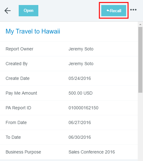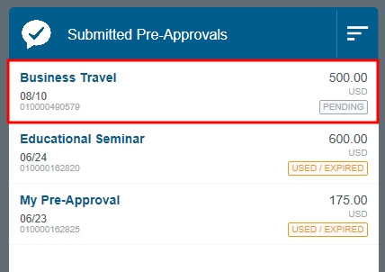 Recall a Pre-Approval to Draft Status You may recall a submitted pre-approval as long as no line items have been fully approved. The RECALL button will not function for pre-approvals with Expired, Applied, Partially Applied or Approved status. 1. Select a Pre-approval request with a "Pending" status and no approved items. 2. On the Preview screen, click RECALL. This button is only accessible in the Preview, not if you open the pre-approval. 3. On the confirmation screen, click YES. The pre-approval will become a draft and be moved to your Draft Pre-Approvals list but retain any notes that were entered during the incomplete approval process. Was this article helpful? Yes No