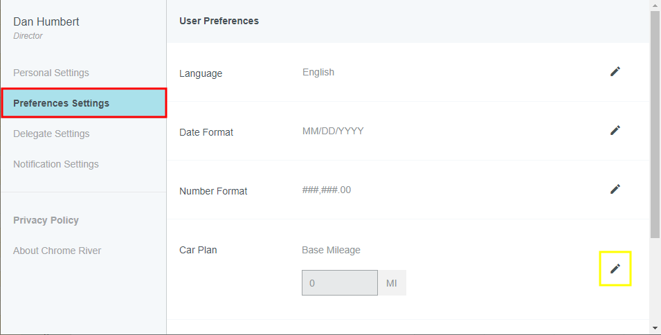 Add Car Plan Expenses to a Report If your organization has configured Emburse Enterprise’s Car Plan, it works with our Mileage Wizard to help your company meet international requirements for reimbursing drivers at the appropriate rate for their vehicle engine type or the total distance they have driven within the fiscal year. The Mileage Wizard makes it easy to set the distance driven and save the corresponding map, while Car Plan simplifies the selection of the correct rate of reimbursement. It customizes the way a mileage rate is calculated based on such criteria as distance, the type of engine in the car, the number of passengers, and the volume of cargo. Car Plan also offers real-time updates to users’ Total Miles, Rate and Reimbursement Amount. When a new Mileage line item is added or an existing Mileage line item is edited, this may affect the rate at which other line items on the report should be reimbursed. Emburse Enterprise automatically recalculates all the Mileage line items on the report in real time and updates any affected line items. Additionally, Car Plan includes blended rates when the miles on a Mileage line item cross over to a new rate. For example, a user might be reimbursed at $0.35/mile for distances of 0-1,000 total miles and $0.25/mile for 1,000-2,000 total miles. On a 100-mile line item that starts at 950 total miles and ends at 1,050 total miles, Emburse Enterprise will correctly calculate the total to be reimbursed at each rate and display to the expense creator and approver the blended rate of $0.30/mile. ] You may set your default Car Plan in Preferences to have your mileage line items populated automatically. However, you may still choose to override the Car Plan at the line-item level if a different car was driven for that particular trip. Set Car Plan in Preferences 1. Click your name in the top right corner of the app, then click ACCOUNT SETTINGS. 2. Click PREFERENCES SETTINGS, then click on the default Car Plan to edit it. On wide-screen devices, click the pencil icon to edit. 3. Use the Car Plan drop-down menu to select the appropriate plan. 4. Depending on the Car Plan you select, you may be presented with a Tier drop-down menu for choosing an engine type/size or you may see a Total Distance Year-to-Date/Fiscal Year mileage amount in the second field. 5. Click SAVE. Set Car Plan on Line Item You may override the Car Plan at the line-item level if a different car was driven for that particular trip. 1. On the Mileage expense entry screen, click the Car Plan drop-down to select the desired plan. 2. If you selected a distance-based plan, the Total Distance Year-to-Date and Rate will display. Enter the distance or click MAP to have it automatically calculated based on your origin and destination(s). If you selected an engine type-based plan, use the Tier drop-down to select the appropriate type. Then enter the distance or click MAP to have it automatically calculated based on your origin and destination(s). Memorized Expense With Car Plan Emburse Enterprise offers customers a Memorized Expenses feature that allows users to "memorize" frequently used expense line items in order to easily add them to future reports from the eWallet. The system will memorize the Car Plan, Tier and Modifier values for these line items. See Memorize Frequently Used Expenses for complete details. Was this article helpful? Yes No