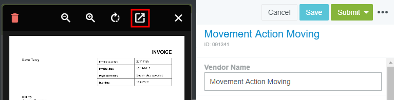 View Images Attached to Invoices Attachments Section By default the Attachments section will display a thumbnail of each image attached, and the total number of images attached will be shown in parentheses. Click the expanding box icon to view the images full-width within the pane. Lightbox View Click a thumbnail to view the image in the lightbox. On wide-screen devices the lightbox opens to the left of the Invoice Entry screen. On narrow-screen devices, the lightbox slides in on top of the Invoice Entry screen. Click the icons above the preview to reduce, enlarge or rotate the invoice image. The trash icon in the upper left corner deletes just the image being viewed in the lightbox. To delete all images, click the red DELETE ALL ATTACHMENTS below the list of thumbnails on the Edit Invoice screen. Thumbnail images at the bottom of the lightbox allow you to navigate among multiple attached images. On wide-screen devices, an additional option allows you to open the image in a new browser tab. Was this article helpful? Yes No