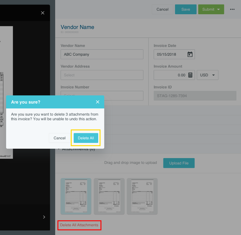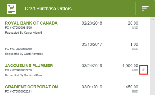 Add Images to Purchase Orders Images may be uploaded as a PDF to be immediately attached to your purchase order or to create a new purchase order based on the image. If you chose to upload PDF images, the maximum size for a single upload is 10 MB, and the combined size of all the uploads for a single purchase order must be 100 MB or less. For more information, see Invoice Image-Capture Specifications and Troubleshooting. A paperclip icon indicates an attachment in the Draft Purchase Orders screen. You may view attached images from the PO preview by clicking IMAGES or scrolling down to the Attachments section and clicking the image thumbnail(s). Use the buttons at the top of the lightbox to zoom in and out, rotate the image and open the image in a new browser window. Add Image Click BROWSE FILE to upload the PO image. On desktop computers, you may simply drag and drop the image onto the Purchase Entry pane to upload it. The image will appear below as a thumbnail. Tap the thumbnail to view the image in the lightbox. On wide-screen devices the lightbox opens to the left of the PO Entry screen. On narrow-screen devices, it slides in over the PO Entry screen. See Invoice Image-Capture Specifications and Troubleshooting for complete details on the types of images that may be uploaded to invoices and purchase orders. Delete Image To delete a single image, click on it to open the light box, then click the red trash can. On the confirmation pop-up, click DELETE. To delete all attachments on a purchase order, click the DELETE ALL ATTACHMENTS button in the purchase order’s preview or in edit mode. On the confirmation pop-up, click DELETE ALL. Was this article helpful? Yes No
