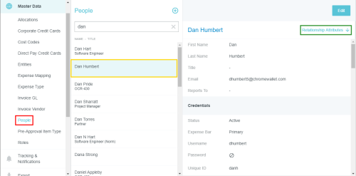 Activate the Goods Receipt Module Emburse Enterprise's receiving module allows you to track the receipt of items acquired via a Emburse Enterprise purchase order. You may view a summary of submitted goods receipts directly on the Dashboard when you log in. Click the summary to be taken to your list of submitted goods receipts. Activate the GOODS RECEIPT Module for Users Administrators with appropriate permissions may enable the GOODS RECEIPT module for specific individuals at the user level via the People admin screen or via the Person data feed. 1. On the People admin screen, select the desired user and click the RELATIONSHIP ATTRIBUTES quick link. 2. Click ADD RELATIONSHIP ATTRIBUTE. 3. In the New Relationship Attribute screen, select the following: Role: Part Of Entity Type: Rules Group Exception Entity: Good Receipt Then click SAVE. Was this article helpful? Yes No