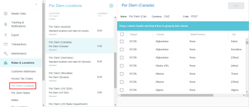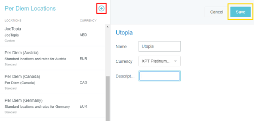 Per Diem Locations Admin Screen Some companies allow employees to spend a specific amount per day on living and travel expenses associated with work. The amount usually varies by location and is defined by government guidelines. The Per Diem Locations screen allows the administrator to manage the countries and cities associated with per diem rates. View Per Diem Locations 1. Click ADMIN SETTINGS > RATES & LOCATIONS > PER DIEM LOCATIONS. The Per Diem Locations list contains predefined sets of locations. Each set is labeled "Standard" or "Custom." Standard: These rates are set by the government for every country. You may add a city to a standard set of locations. To add an entire country you will need to create a custom set of locations. See Create Custom Per Diem Location Sets, below. Custom: These are rates created by your organization. You may add countries and cities to custom sets of locations. 2. Click on a set to view its countries and/or cities. 3. To edit the rates associated with the locations in the list, see Per Diem Rates Admin Screen. Add New Cities to Standard Per Diem Location Sets You may add new cities to the standard sets of per diem locations. To add an entire country, see Create Custom Per Diem Location Sets, below. 1. Select the standard location set in the list and click ADD NEW LOCATION. 2. Select the country, state/province (if applicable), and county (if applicable), then enter the city name. Click ADD. Only one city may be added at a time. 3. The city will automatically be created with a 0.00 rate. Use the Per Diem Rates Admin Screen to adjust it. Create Custom Per Diem Location Sets Creating a custom per diem location set allows you to add an entire country and all its cities at once. 1. Click the blue plus button, enter the name of the new location set, select the currency and, if desired, add a description. Click SAVE. 2. Now click ADD NEW LOCATION to add a country to the per diem location set. 3. Select the country and click ADD. 4. Note that all cities within that country will have a default rate of 0.00. Use the Per Diem Rates Admin Screen to adjust the rates as necessary. Edit Custom Per Diem Location Sets You may edit the name, currency and description of a custom per diem location set. Standard per diem location sets are not editable. 1. Select the desired location set and click EDIT. 2. Make the desired changes and click SAVE. Note that the code may not be edited. Was this article helpful? Yes No