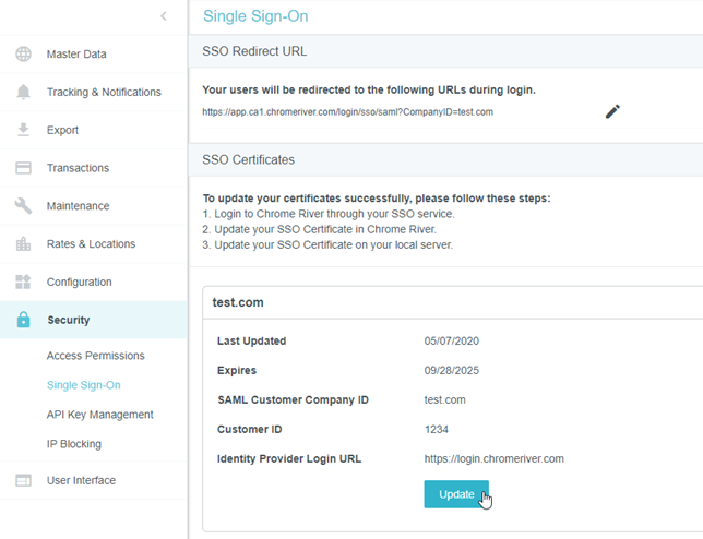 • Admins will be able to update your organization's SSO certificate via the Single Sign-On Admin Screen.