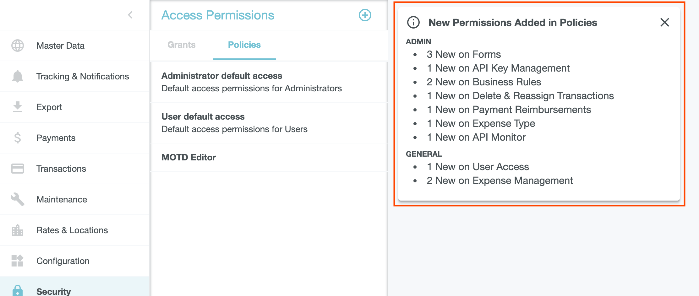 Archived Emburse Enterprise Release Notes December 14, 2022 New Feature Available ADMIN Introducing the UI Rules Admin Screen Administrators may now view details about your organization’s User-Interface Rules via the new UI Rules Admin Screen. This will give you complete insight into exactly which UI rules affect line item and header form behaviors and what the rules are doing. Currently this screen is read only. In future releases we will add the ability to create and edit UI rules. Although the screen currently lists every rule, at this time we support visualization of about 80% of UI rules. Rules that are not yet able to be visualized will show the message “This UI rule is not supported in the UI Rule Editor at this time.” In order to take advantage of this enhancement, an administrator will need to activate it via the Access Permissions Admin Screen. Select the appropriate policy and, under UI Rules, check “Show In Admin Menu.” Enhancement IMAGING Sealed Image Retrieval Limit Increased to 4,000 Reports For customers who take advantage of the Emburse Digital Archiving Service (EDAS), we have increased the allowed number of reports with sealed images that may be requested from 150 to 4,000 at a time via the Request Digital Receipts admin screen. For complete details, see “Request Sealed Images” in the Request Digital Receipts Admin Screen article in the Emburse Enterprise Help Center. November 30, 2022 Enhancements EMBURSE ANALYTICS PRO New Fields Added to Explores for Credit Card Transactions Users may now create Looks with the following credit card transaction-related fields: Merchant Category Code, Merchant ID, Post Date (the date the credit card issuer posts a transaction and adds it to the cardholder’s balance), and Card Number Last Four (last four digits of the card number used for the transaction). New “Feed Provider” Field Added to Expense Reporting Views We have added a Feed Provider field to expense reporting views that will name the integration provider from which a transaction was sourced. This will be especially useful for customers using such integrations as TripLog and Amazon Business. Resolved Issue ADMIN Message of the Day Updates We have resolved an issue that prevented some customers from updating the Message of the Day. November 16, 2022 Enhancements EXPENSE APPROVAL Accessibility Enhancement for Report Searches We have enhanced keyboard navigation and screen-reader support for report searches on the Approval Dashboard. ADMIN Expense Approved Amounts Now Available Via APIs Emburse Enterprise’s /v1/expense-report-approvals/{reportId} and /v3/expense-reports/{reportId}/line-items APIs will now pass the Approved Amount at the allocation level. For example, if an expense was split between two allocations and the approver adjusted the line-item amount, the new amounts for both allocations will be passed by the API. CZK Currency Now Supported By Wise Emburse Global Reimbursements customers may now use our Wise integration to process payments in CZK currency. Export Builder Highlights and Warning Messages Export Builder has been enhanced to provide highlighting and warning messages when defining rows. Now, certain combinations of row frequency and primary objects or attributes that could potentially result in unexpected output will be highlighted. Note that these warning messages are for informational purposes only and will not change the configuration or prevent it from being saved. DIRECT PAY Bank Account Reimbursements Screen Enhanced for DIRECT Corpay (Global Exchange) Customers For Direct Pay Corpay (Global Exchange) customers, we have enhanced our Bank Account – Reimbursements screen within the Personal Settings tab of the user Account Settings to improve alignment with current and future reimbursement compliance requirements. Users who are entering their banking information for the first time or updating existing banking information will now see the enhanced screen. Please note that the new screen does require users to re-enter all banking information. Currently, users who already have banking information in our system will not be required to update their information. However, beginning in January 2023, this will be a requirement for expense submission. November 2, 2022 Enhancements EMBURSE ANALYTICS PRO New Failed/Filtered Transactions Reference Reporting Model We have introduced a new Reference reporting model called “Failed/Filtered Transactions (Staged)” to enable ad-hoc reporting against failed transactions. The model includes a full list of fields for the related Transaction Owner (if defined). EMBURSE CONNECT Per Diem Location Fields Added to Views We have added the following fields to existing views in the ExpenseLinePerDiem folder to make analysis easier: PerDiemLocationCountry, PerDiemLocationCountryName, PerDiemLocationState, and PerDiemLocationCity. October 19, 2022 Enhancements EXPENSE APPROVAL Enhanced Adjustment Capabilities for Expense Approvers Beginning today and continuing over several weeks, we will be rolling out extended expense-approval adjustment capabilities in the Production environment. In addition to editing the Approved Amount, Business Purpose, Allocation and Tax fields, expense approvers will now be able to adjust the Date, Description, and any user-defined fields (UDAs). In order to take advantage of this enhancement when it is available to your organization, an admin will need to activate it via the Access Permissions admin screen. Select the appropriate policy and, under Expense Approvals, check “Allow adjust on Description, Date & User Defined Attributes during approval.” For complete details, see "Enable Enhanced Adjustment Capabilities for Expense Approvers" in the Access Permissions Admin Screen article in the Emburse Enterprise Help Center. INVOICE Introducing Invoice OCR Vision Email Identifiers and Group Routing OCR Vision customers who use the Invoice OCR auto-submit feature may now add an ide