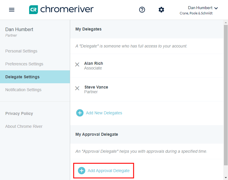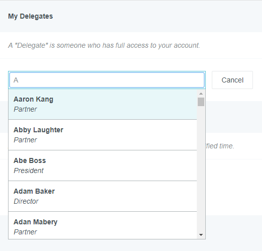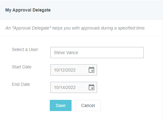 Ajouter un délégué ou travailler en tant que délégué Emburse Enterprise propose trois types de délégation pour permettre aux utilisateurs disposant des autorisations appropriées de créer ou d'approuver des notes de frais les uns pour les autres. Délégué : possibilité de créer des rapports de dépenses et des préapprobations pour un autre utilisateur et d’accéder à son menu de paramètres, à son écran d’accueil et à ses rapports de recherche. Vous recevrez une copie de toute notification par e-mail concernant le refus ou la modification des rapports créés pour cet utilisateur. Vous ne pourrez toutefois pas approuver les dépenses, les préapprobations ou les factures acheminées à cet utilisateur. Super délégué : détient les mêmes privilèges que le délégué, mais peut agir comme délégué de tout utilisateur de l’entreprise sans devoir y être autorisé individuellement par chacun d’eux. Délégué responsable de l’approbation : approuve temporairement au nom d’un autre utilisateur les dépenses, les approbations préalables et/ou les factures par e-mail, par exemple, lorsque celui-ci est en vacances. Vous ne pourrez pas accéder à l’écran d’approbation de l’utilisateur. Agir à titre de délégué d’un autre utilisateur Lorsque d’autres utilisateurs vous ont autorisé à travailler en tant que délégué, vous verrez leurs noms sous votre nom lorsque vous cliquez dessus dans le coin supérieur droit. Le nombre total de leurs transactions de dépense inutilisées, y compris leurs cartes de crédit, leurs reçus, leurs avances de fonds, leurs données de déplacement et leurs préapprobations approuvées, s’affiche à la droite de leurs noms. Ce numéro ne s’affichera pas à côté de votre propre nom d’utilisateur. Délégués spéciaux Si vous êtes un délégué spécial, vous voyez plutôt le lien SÉLECTIONNER UN AUTRE UTILISATEUR qui vous permet de parcourir une liste de tous les utilisateurs de l’organisation et d’y faire des recherches. Si la mention « Departed » s’affiche à côté du nom de l’utilisateur, cela signifie que ce dernier a quitté l’entreprise, mais que des tâches doivent encore être effectuées par ses délégués. Cliquez sur le nom d’utilisateur souhaité pour travailler en tant que délégué pour cette personne. Son nom s’affichera dans le coin supérieur droit de l’application. Pour revenir à votre propre compte, il vous suffit de cliquer sur le nom d’utilisateur, puis de sélectionner votre nom. Autoriser un utilisateur à agir en votre nom Pour ajouter un utilisateur autorisé à travailler comme votre délégué, cliquez sur votre nom dans le coin supérieur droit, puis cliquez sur PARAMÈTRES DE COMPTE. Cliquez sur PARAMÈTRES DES DÉLÉGUÉS, puis cliquez sur AJOUTER DE NOUVEAUX DÉLÉGUÉS. Utilisez la barre de défilement pour parcourir la liste des délégués potentiels ou commencez à taper le nom de l’utilisateur voulu pour parcourir la liste selon les lettres entrées. L’utilisateur que vous avez sélectionné pourra désormais sélectionner votre nom dans sa propre liste de délégation et créer des dépenses en votre nom. Supprimer un délégué Pour révoquer la capacité d’un utilisateur à agir en tant que délégué, cliquez sur le X à côté de son nom dans la liste Mes délégués. Délégation d’approbation Si vous avez besoin qu’un autre utilisateur approuve temporairement des dépenses en votre nom, par exemple, pendant que vous êtes en vacances, cliquez sur votre nom dans le coin supérieur droit, puis cliquez sur PARAMÈTRES DE COMPTE. Dans Paramètres du délégué, sous Mon délégué responsable de l’approbation, cliquez sur +AJOUTER UN DÉLÉGUÉ RESPONSABLE DE L’APPROBATION. Vous pourrez choisir un délégué responsable de l’approbation dans une liste de recherche et configurer les dates de début et de fin de l’autorisation d’approuver les dépenses en votre nom. Bien que la liste contienne tout le monde, les règles de votre organisation pourraient faire en sorte qu’un message d’erreur s’affiche si vous sélectionnez une personne qui n’a pas l’autorisation d’agir en tant que votre délégué. Le nom de la personne déléguée s’affiche avec une plage de dates durant laquelle elle peut approuver les dépenses en votre nom. Emburse Enterprise envoie au délégué responsable de l’approbation un courriel décrivant les modifications de routage qui auront lieu pendant cette période. Toutes les dépenses, les préapprobations ou les factures qui vous sont attribuées seront automatiquement mises en file d’attente pour que le délégué les approuve. Les e-mails d’approbation habituels seront également acheminés au délégué. Lorsque le délégué d’approbation correspond au créateur du rapport, l’approbation est implicite et aucun e-mail d’approbation n’est envoyé. Activer plusieurs délégués d’approbation Si votre entreprise a activé la fonction d’activation de plusieurs délégués d’approbation d’Emburse Enterprise via les règles d’autorisation d’utilisateur, vous pouvez désigner jusqu’à deux délégués d’approbation. Cependant, un seul délégué à l’approbation peut travailler pour vous à la fois. Si vous tentez de nommer un deuxième délégué pour une période qui chevauche celle de votre autre délégué, vous recevrez un message d’erreur. Réacheminement de délégation d’approbation Le processus de réacheminement des rapports de dépenses à votre délégué responsable de l’approbation est en vigueur entre les dates de début et de fin que vous avez désignées. Ces règles s’appliquent à tous les rapports et à toutes les préapprobations réacheminées de votre compte à votre délégué responsable de l’approbation. Ces étapes de réacheminement sont enregistrées dans le centre de suivi comme affectation sans suite à donner (NOAC) et les