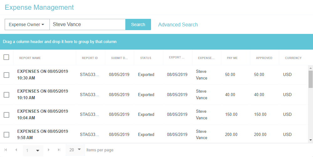Tableau de bord de Gestion des dépenses Le tableau de bord de gestion des dépenses permet aux utilisateurs disposant des autorisations appropriées d’afficher tous les rapports de dépenses exportés des propriétaires de dépenses individuels dans un emplacement central, ce qui élimine le besoin de déléguer dans les comptes des utilisateurs individuels. Les utilisateurs peuvent ouvrir des rapports de dépenses et les afficher comme le ferait le propriétaire de la dépense, y compris les éléments de ligne, les pièces jointes et les détails de suivi. Les utilisateurs disposant des autorisations appropriées peuvent également rappeler les rapports exportés depuis le tableau de bord de gestion des dépenses. Les administrateurs peuvent contrôler l’accès des utilisateurs au tableau de bord de gestion des dépenses via l’écran d’administrateur des autorisations d’accès. Consultez la section « Autorisations du tableau de bord de gestion des dépenses » dans Écran d’administration des autorisations d’accès pour plus de détails. Grille de gestion des Dépenses 1. Cliquez sur le bouton MENU dans le coin supérieur gauche, puis cliquez sur GESTION DES FACTURES. Remarque : seuls les utilisateurs d’appareils à écran large ont accès à la gestion des dépenses ; les éléments de menu ne s’afficheront pas sur les appareils mobiles à écran étroit. Le tableau de bord Gestion des factures s’affichera. 2. Utilisez la boîte de texte dans le coin supérieur gauche pour les dépenses par le Propriétaire des dépenses ou l’identifiant du rapport. 3. Pour trier la liste des dépenses selon ce critère, cliquez sur l’en-tête de la colonne. Nom du rapport ID du rapport Date d’envoi Statut Date d’exportation Personne à rembourser Me payer (montant) Approuvé (montant) Devise Pour regrouper la liste des dépenses d’une colonne, vous pouvez glisser l’en-tête de la colonne dans la barre bleue située dans le haut de l’écran. Pour supprimer le groupe, cliquez sur X à côté du nom de l’en-tête de la colonne. 4. Cliquez sur RECHERCHE AVANCÉE pour filtrer les rapports en fonction de leur état. Voir un aperçu des dépenses Cliquez une fois sur une dépense dans la liste pour ouvrir un aperçu. Cliquez sur la flèche arrière en haut à gauche pour revenir au tableau de bord de gestion des dépenses. Vous pouvez effectuer plusieurs actions directement depuis l’aperçu : Carte de profil :Cliquez sur le nom du propriétaire du rapport pour afficher sa carte de profil. Ouvrir : Cliquer pour ouvrir le rapport complet. Suivi : Cliquer pour afficher le chemin d’acheminement de l’approbation. Rappel : Si vous disposez des autorisations appropriées, vous verrez une icône vous permettant de rappeler le rapport. Accès au rapport de dépenses En cliquant sur OUVRIR dans l’aperçu des dépenses, vous pourrez afficher le rapport comme le ferait le propriétaire des dépenses, y compris les éléments de ligne et les pièces jointes. Rappeler des rapports des dépenses Le tableau de bord Gestion des dépenses peut permettre aux utilisateurs disposant des autorisations appropriées de rappeler un rapport entièrement exporté. Le rapport est envoyé au tableau de bord d’approbation de l’utilisateur qui l’a rappelé. De là, cet utilisateur peut ajuster le rapport ou le renvoyer au propriétaire de la dépense pour ajustement. Remarque : cette fonctionnalité n’est recommandée que dans certaines circonstances. Les administrateurs peuvent consulter « Autorisations du tableau de bord Gestion des dépenses » dans Autorisations d’accès pour plus de détails. Si cette fonction a été activée, il y a deux façons de rappeler un rapport du tableau de bord Gestion des dépenses. 1. Cliquez sur RAPPEL dans l’aperçu du rapport dans le tableau de bord de la gestion des dépenses. 2. Ou ouvrez le rapport et cliquez sur le bouton de RAPPEL. Sécurité de la gestion des dépenses Votre organisation peut choisir de restreindre l’accès à certains rapports de dépenses sur le tableau de bord de gestion des dépenses via les règles AutorisationUtilisateur. Les utilisateurs restreints verront le message d’erreur « Accès requis pour afficher ce rapport » lorsqu’ils rechercheront des rapports auxquels ils n’ont pas accès. Si vous souhaitez activer cette fonctionnalité, contactez le Service d’assistance. Cet article vous a-t-il été utile ? Oui Non