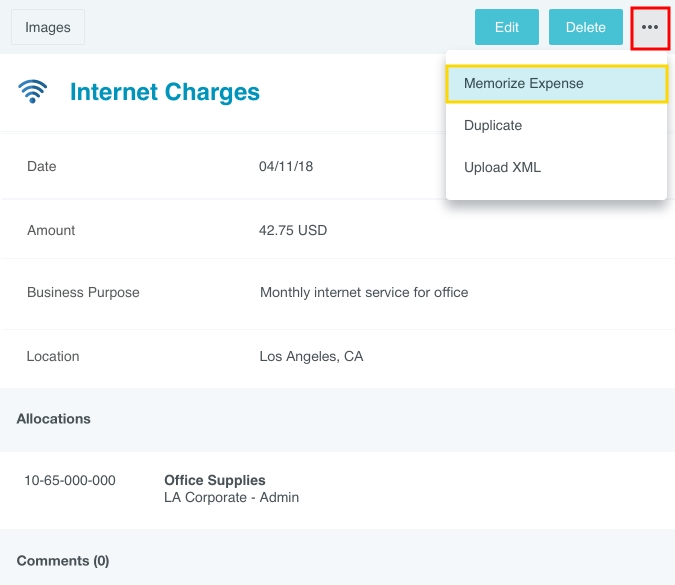 Dépenses mémorisées Si votre organisation a activé cette fonctionnalité, vous pouvez « mémoriser » les lignes d'éléments des dépenses fréquemment utilisées pour les ajouter facilement à vos rapports futurs à partir du portefeuille électronique. Par exemple, si vous créez la même dépense de frais Internet chaque mois, vous pourriez mémoriser cette ligne d'élément de sorte qu'elle se génère comme une transaction hors ligne dans le portefeuille électronique pour une utilisation future. Veuillez prendre note que les dépenses détaillées, comme les dépenses d'hôtel, ne peuvent pas être mémorisées. Créer des dépenses mémorisées [1] Après avoir enregistré l’élément de ligne que vous souhaitez mémoriser, cliquez sur le bouton PLUS (trois points) dans l’aperçu de l’article et sélectionnez MÉMORISER LA DÉPENSE. [2] Il vous sera demandé de nommer la dépense mémorisée afin que vous puissiez la retrouver facilement à l'avenir. Cliquez ensuite sur CRÉER. [3] La dépense sera désormais enregistrée dans la section hors ligne du porte-monnaie électronique pour une utilisation future. Ajouter les dépenses mémorisées au rapport [1] Cliquez sur le bouton plus pour ajouter un élément de ligne, puis cliquez sur HORS LIGNE dans le portefeuille électronique. [2] Trouvez les dépenses mémorisées souhaitées et cliquez sur les cases à cocher pour les sélectionner. Cliquez ensuite sur le bouton AJOUTER ou PLUS. [3] Chaque dépense mémorisée s'ouvrira en mode édition pour vous permettre de faire tous les ajustements nécessaires et enregistrer la ligne d'élément dans le nouveau rapport. [4] Les dépenses mémorisées resteront dans le portefeuille électronique pour une utilisation future. Cet article vous a-t-il été utile ? Oui Non