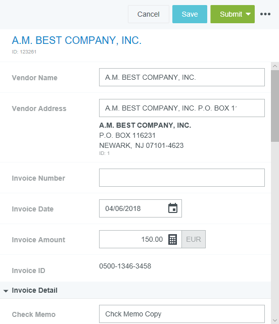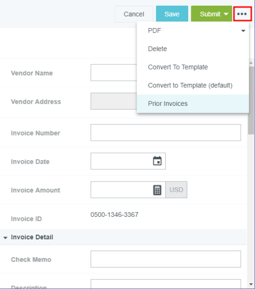 Modèles de facture Les modèles de facture d’Emburse Enterprise permettent aux utilisateurs de préremplir et préallouer des factures à utiliser dans l’ensemble de l’entreprise. Les modèles sont particulièrement utiles pour les dépenses partagées qui sont attribuées à plusieurs services plutôt qu'à un utilisateur unique. Les clients qui utilisent Emburse Enterprise CAPTURE ou OCR VISION peuvent utiliser les modèles par défaut pour créer automatiquement des postes. Créer un modèle de facture 1. Pour créer la facture que vous enregistrerez comme modèle, suivez les étapes indiquées dans Créer une facture. Tous les champs sont facultatifs, y compris le champ « Fournisseur ». 2. Pour enregistrer un projet de facture comme modèle, vous devez y ajouter des lignes d'élément et procéder à toutes les allocations. Le montant de la facture doit être égal à la somme des montants des lignes d'élément. Suivez les étapes énumérées sous Allouer les montants. Les proportions attribuées aux types de dépenses dans le modèle seront appliquées automatiquement à toute facture créée à partir de ce modèle. Par exemple, si votre modèle affiche un montant de 100 $, dont 50 $ sont attribués à un code de coût et 50 $ à un autre, le montant de toute facture créée à partir de ce modèle sera attribué à ces mêmes codes de coût selon la même proportion. 3. Vous pouvez ajouter des notes ou téléverser des images dans le modèle, comme vous pouvez le faire avec toute facture. 4. Dans le coin supérieur droit, cliquez sur l’icône à trois points pour sélectionner CONVERTIR SELON LE MODÈLE ou CONVERTIR SELON LE MODÈLE (PAR DÉFAUT). Convertir selon le modèle : Si toutes les allocations sont faites, vous pouvez enregistrer le modèle afin de l'utiliser pour créer des factures similaires. Convertir selon le modèle (par défaut) : Si toutes les allocations de facture sont effectuées et qu'aucun autre modèle ne comporte la même combinaison de fournisseur, d'adresse du fournisseur, de demandeur (le cas échéant) et d'adresse du client (le cas échéant), il est possible d'enregistrer la facture comme modèle par défaut afin de créer des postes sur les factures générées à l'aide d’Emburse Enterprise CAPTURE ou OCR VISION. Consultez Utiliser des modèles par défaut, ci-dessous. 5. Le système vérifiera si le modèle est entièrement attribué avant de l'accepter. Le modèle sera ensuite enregistré. Modifier ou supprimer un modèle de facture Une fois enregistré, un modèle peut seulement être modifié ou supprimé par un administrateur par le biais de l'écran Gestion des factures. Les modèles ne s’afficheront pas sur le tableau de bord des factures ou dans le tableau de bord des demandes. 1. Sur l’écran Gestion des factures, cliquez sur RECHERCHE AVANCÉE. 2. Cliquez sur ÉTAT dans la barre de navigation de gauche, puis cochez Modèle et, si vous le souhaitez, Modèle (par défaut). Pour enregistrer cette recherche pour un accès plus facile aux modèles à l’avenir, cliquez sur ENREGISTRER avant de rechercher. Donnez un nom à la recherche et cliquez sur ENREGISTRER. La prochaine fois, cliquez simplement sur RECHERCHES ENREGISTRÉES sur l’écran Gestion des factures et sélectionnez votre recherche de modèle enregistrée. Cliquez sur RECHERCHER. 3. Vérifiez le modèle souhaité dans la liste et cliquez sur MODIFIER ou SUPPRIMER. Vous pouvez également double-cliquer sur le modèle dans la liste pour l’ouvrir, puis cliquer sur MODIFIER ou SUPPRIMER. Créer une facture à partir d'un modèle 1. Sur l’écran de saisie des factures, cliquez sur l’icône à trois points, puis sur FACTURES ANTÉRIEURES. 2. Utilisez le menu déroulant Type pour filtrer les modèles par type, saisissez tout autre critère de recherche et cliquez sur RECHERCHER. 3. Sélectionnez le modèle souhaité et cliquez sur COPIER. 4. Saisissez la date et le montant souhaités pour la facture que vous créez à partir du modèle et cliquez sur COPIER. 5. L'écran de saisie de la facture se remplira et effectuera l'allocation en fonction des valeurs indiquées sur le modèle. La facture peut maintenant être enregistrée ou envoyée. Utiliser des modèles par défaut Emburse Enterprise permet aux clients de créer des modèles par défaut à utiliser avec Emburse Enterprise CAPTURE ou OCR VISION. Une fois que les factures sont importées dans Emburse Enterprise par l'une ou l'autre de ces méthodes, le système leur assigne le modèle par défaut qui leur correspond afin de créer automatiquement des postes. Pour créer un modèle par défaut, suivez les étapes indiquées ci-dessus sous Créer un modèle de facture, puis sélectionnez l'enregistrement CONVERTIR SELON LE MODÈLE (PAR DÉFAUT). Deux conditions doivent être respectées afin d'enregistrer une facture comme modèle par défaut : L'allocation doit être complète. Le montant de la facture doit être égal à la somme des montants des lignes d'élément. Aucun autre modèle ne peut contenir la même combinaison de fournisseur, d'adresse du fournisseur, de demandeur (s'il y a lieu) et d'adresse du client (s'il y a lieu). Tout champ vide compte comme une valeur qui ne peut être dupliquée dans un autre modèle par défaut. Une fois que vous aurez créé un modèle par défaut, CAPTURE ou OCR VISION l’ouvrira afin d'ajouter automatiquement des postes aux factures appropriées créées dans Emburse Enterprise. Cet article vous a-t-il été utile ? Oui Non