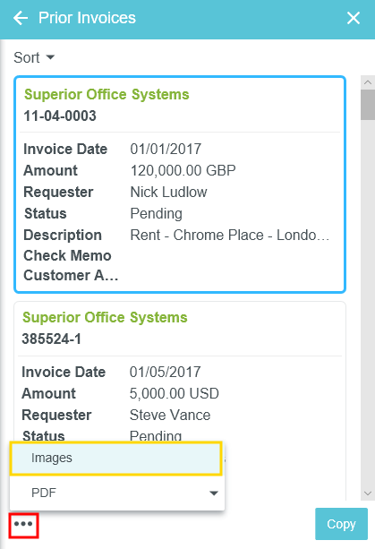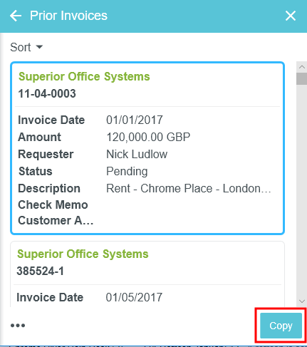 Copier les détails d’une facture antérieure dans une nouvelle facture Lors de la création d’une nouvelle facture, Emburse Invoice Enterprise vous permet de rechercher les factures antérieures d’un fournisseur précis et de les consulter. Il s’agit d’un excellent outil pour afficher l’historique des factures de ce fournisseur et vous assurer de ne pas lui faire la même facture deux fois. Cet outil vous permet aussi de copier les détails d’une facture antérieure dans une nouvelle facture, y compris les taux de taxation liés à l’en-tête et les lignes d’élément. Notez que les taux de taxation seront établis selon la date de la facture en cours de création, et non selon la date de la facture antérieure. Les montants des taxes inscrits dans l’en-tête devront être entrés manuellement mais seront calculés automatiquement sur toute ligne d’élément. Rechercher des factures antérieures 1. Sur l’écran Nouvelle facture, cliquez sur le bouton à trois points, puis sur FACTURES ANTÉRIEURES. Commencez à taper le nom du fournisseur dans le champ FOURNISSEUR, puis cliquez sur le fournisseur souhaité lorsqu’il apparaît. 3. Votre pouvez filtrer votre recherche de facture par Adresse Date de la facture : Utilisez le menu déroulant ou sélectionnez des dates personnalisées en vous servant des icônes du calendrier. Montant de la facture : sélectionnez la fonction (Exactement, Supérieur ou égal, etc.), puis entrez le montant dans la case ci-dessous. Devise de facturation Type : Filtre pour les factures ou les modèles, si votre organisation les utilise. Demandeur Adresse de client Cliquez sur RECHERCHER. Afficher les factures antérieures La grille des factures antérieures vous fournit un sommaire rapide des détails de la facture. Sur les appareils à écran large, vous verrez une liste des factures antérieures dans une grille. Sur les appareils à petit écran, chaque facture apparaîtra dans sa propre boîte. Pour afficher une facture spécifique, cliquez dessus dans la liste, puis cliquez sur le bouton IMAGES dans le coin inférieur gauche. Sur un appareil à écran étroit, vous devrez cliquer sur l’icône à trois points pour accéder au bouton IMAGES. Cliquez sur le bouton PDF pour afficher la page couverture, le rapport complet ou l’image du rapport complet de la facture. Copier la facture antérieure Vous pouvez copier les détails d'une facture établie antérieurement dans Emburse Enterprise pour créer une nouvelle facture. Remarque : Si le statut de la facture sur cet écran est « Convertie », le dossier de la facture n'a PAS été traité dans Emburse Enterprise et aucune information détaillée de la facture n'est disponible dans Emburse Enterprise pour être copiée. 1. Sélectionnez la facture que vous souhaitez copier et cliquez sur COPIER. 2. Remplissez les renseignements sur l’écran de confirmation avec la nouvelle date et le nouveau montant de la facture. Cliquez sur COPIER. 3. Une nouvelle facture sera créée pour vous et les données des lignes d’élément de la facture antérieure auront été mises à jour pour refléter le total de la nouvelle facture. Vous pouvez désormais remplir les champs restants de la facture et continuer de la traiter. Cet article vous a-t-il été utile ? Oui Non