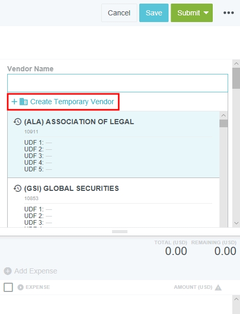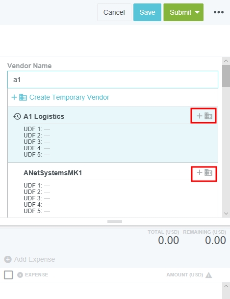 Créer un fournisseur temporaire De temps à autre, lorsque vous créez une nouvelle facture ou un nouveau bon de commande, le fournisseur dont vous avez besoin peut être absent du menu déroulant de recherche de fournisseurs. Vous pouvez créer un nouveau fournisseur temporaire pour la facture ou le bon de commande, et demander ensuite à votre administrateur de fournisseurs d’ajouter le nouveau à votre système comptable. Ajouter un fournisseur temporaire 1. Cliquez dans la boîte Nom de fournisseur et sélectionnez CRÉER UN FOURNISSEUR TEMPORAIRE dans le haut de la liste déroulante. 2. Saisissez le nom du nouveau fournisseur, puis cliquez sur CRÉER. Vous n’aurez pas besoin d’ajouter l’adresse du fournisseur. 3. Remplissez les champs restants sur l’écran de saisie de la nouvelle facture et cliquez sur ENREGISTRER ou, le cas échéant, sur ENVOYER. Une icône spéciale accompagnera le nom du nouveau fournisseur temporaire dans le tableau de bord des factures. L’icône s’affichera également lorsque le fournisseur temporaire apparaîtra dans les résultats de recherche futurs. Utiliser un fournisseur temporaire Selon les règles de votre entreprise, votre facture ou bon de commande envoyé sera probablement acheminé à un spécialiste de fournisseurs dans l’organisation. Ce spécialiste examinera le nouveau fournisseur temporaire et l’ajoutera avec l’adresse correspondante au système comptable de votre entreprise ou à Emburse Enterprise en ligne. Une fois que les renseignements du nouveau fournisseur ont été ajoutés au système comptable de votre entreprise par le spécialiste des comptes fournisseurs, nous vous recommandons que ce dernier attende que ces renseignements soient mis à jour dans Emburse Enterprise avant de remplacer le nouveau fournisseur temporaire par le fournisseur approuvé. Dans certaines entreprises, les factures soumises sont acheminées sans être d’abord transmises à l’examinateur des comptes créditeurs. Ce dernier devra tout de même convertir le nouveau fournisseur temporaire en fournisseur permanent avant que la facture puisse être approuvée et exportée. Convertir un nouveau fournisseur temporaire en fournisseur permanent Une fois que les renseignements sur le nouveau fournisseur ont été ajoutés au système comptable de votre entreprise et à Emburse Enterprise, vous ou l’approbateur devrez remplacer le nom du nouveau fournisseur temporaire dans la facture ou le bon de commande par le nom de fournisseur approuvé qui a été ajouté à votre système comptable et chargé dans Emburse Enterprise. Si la facture ou le bon de commande n’a pas été envoyé, ouvrez-le dans les brouillons et utilisez le menu déroulant des fournisseurs pour sélectionner le nom du fournisseur permanent dans la liste. Cliquez sur ENREGISTRER ou ENVOYER. Si la facture ou le bon de commande a déjà été envoyé, l’approbateur devra l’ouvrir dans le tableau de bord d’approbation (ou l’examinateur peut l’ouvrir dans le tableau de bord) pour sélectionner le nom de fournisseur permanent, puis cliquer sur ENREGISTRER ou ENVOYER. Remarque : Remarque : l’option de filtre est disponible dans le tableau de bord des factures et celui de gestion des bons de commande, ce qui permet à l’examinateur de rechercher toutes les factures ou tous les bons de commande qui contiennent des demandes liées au nouveau fournisseur. Cet article vous a-t-il été utile ? Oui Non