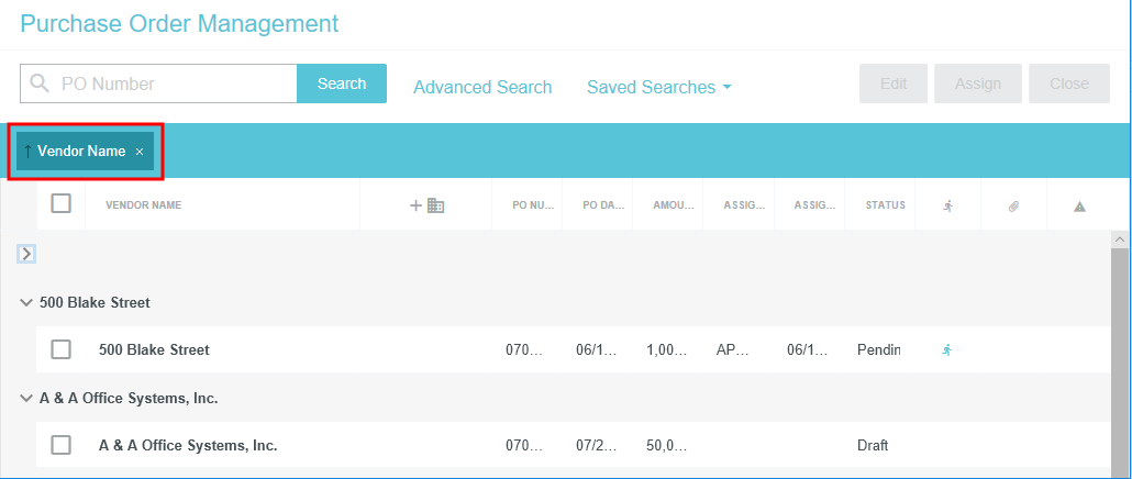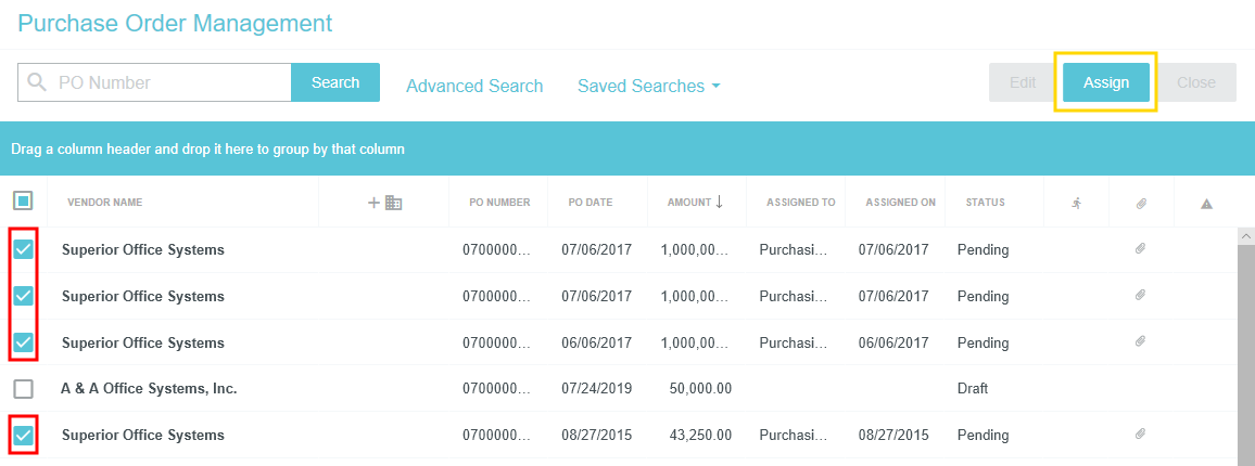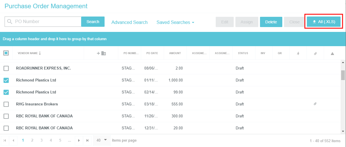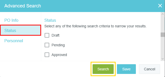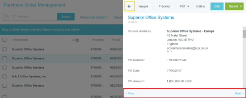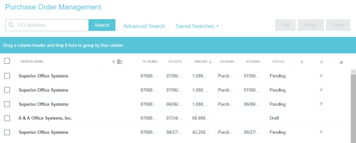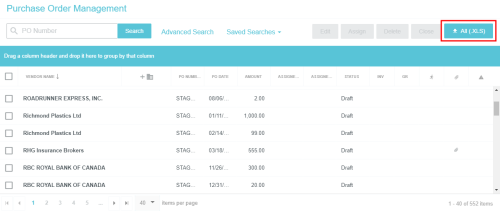 Tableau de bord de gestion des bons de commande Le tableau de bord Gestion des bons de commande permet aux utilisateurs bénéficiant des autorisations appropriées d’afficher les bons de commande et de les gérer. Activer le tableau de bord de gestion des bons de commande Les administrateurs disposant des autorisations appropriées peuvent contrôler l’accès des utilisateurs au tableau de bord de gestion des bons de commande via l’écran d’administrateur des autorisations d’accès. 1. Dans le menu Administrateur, cliquez sur SÉCURITÉ > AUTORISATIONS D’ACCÈS. 2. Cliquez sur l’onglet POLITIQUES, sélectionnez la politique appropriée, et cliquez sur MODIFIER. 3. Dans la section Autorisations, sous Bon de commande, recherchez la section Gestion des bons de commande et cochez Gestion des bon de commande. Utilisez les cases à cocher à côté des actions individuelles pour préciser plus en détail ce que les utilisateurs peuvent faire sur le tableau de bord de gestion des bons de commande. 4. Cliquez sur ENREGISTRER. Accéder au tableau de bord de gestion des bons de commande Cliquez sur le bouton MENU dans le coin supérieur gauche, puis cliquez sur GESTION DES BONS DE COMMANDE. Seuls les utilisateurs d’appareils à écran large ont accès à la gestion des bons de commande; les éléments du menu ne s’afficheront pas sur les appareils mobiles à écran étroit. Par défaut, vous ne verrez que les bons de commande que vous avez créés ou demandés, ainsi que ceux qui sont en attente d’approbation par vous ou un groupe auquel vous appartenez. Cependant, vous pouvez utiliser les différentes fonctions de recherche pour trouver n’importe quel bon de commande. En-têtes des colonnes Pour trier la liste de factures selon ce critère, cliquez sur l’en-tête de la colonne. Nom du fournisseur Fournisseur temporaire (icône) Numéro de BC Date du bon de commande Montant Assigné à Attribué le Statut FACT : a une facture associée. GR : a un reçu de marchandises associé. Urgent Pièce jointe Avertissement Pour regrouper les bons de commande d’une colonne, vous pouvez glisser l’en-tête de la colonne dans la barre bleue située dans le haut de l’écran. Pour supprimer le groupe, cliquez sur X à côté du nom de l’en-tête de la colonne. Recherche de bons de commande Utilisez la boîte de texte dans le coin supérieur gauche pour rechercher des bons de commande par numéro. Sélectionnez RECHERCHE AVANCÉE pour effectuer une recherche détaillée sur les renseignements d’un bon de commande, son état ou le personnel qui s’y rattache. Vous pouvez utiliser le curseur à la droite pour faire défiler les options de recherche ou utiliser les onglets de gauche pour vous rendre automatiquement à l’option de recherche voulue. Cliquez ensuite sur RECHERCHER. Recherches enregistrées Vous pouvez également cliquer sur ENREGISTRER pour sauvegarder les paramètres de recherche voulus en vue d’une utilisation ultérieure. Une fenêtre surgissante vous demandera de nommer la recherche. Cliquez ensuite à nouveau sur ENREGISTRER. Pour accéder à une recherche sauvegardée, cliquez sur RECHERCHES ENREGISTRÉES dans le haut du tableau de bord Gestion des bons de commande, puis sélectionnez la recherche désirée dans la liste. Utilisez l’icône de crayon pour modifier une recherche enregistrée. Utilisez l’icône affichant un A souligné pour renommer la recherche enregistrée. Utilisez l’icône corbeille pour supprimer la recherche enregistrée. Créer des bons de commande Cliquez une fois sur un bon de commande dans la liste pour ouvrir un aperçu. Dans l’aperçu, cliquez sur PRÉC ou SUIVANT pour parcourir les aperçus des autres bons de commande sur le tableau de bord. Cliquez sur la flèche arrière en haut à gauche pour revenir au tableau de bord de gestion des bons de commande. Vous pouvez effectuer plusieurs actions directement depuis l’aperçu : Images : cliquez sur cette action pour afficher toutes les images jointes au bon de commande. Suivi : pour voir où se situe le bon de commande dans le processus d’approbation. Pour connaître tous les détails, consultez la section Suivi du routage de bon de commande. PDF : cliquez pour voir le rapport du bon de commande ou le rapport complet. Supprimer : Supprimer le bon de commande Modifier : ouvrir le bon de commande pour l’édition. Envoyer : renvoyer ou approuver le bon de commande Pour obtenir des informations détaillées, veuillez consulter la section Approuver les bons de commande dans Emburse Enterprise ou par courriel. Modifier le bon de commande Cochez la boîte à côté du bon de commande voulu, puis cliquez sur MODIFIER. Attribuer des bons de commande Cochez la boîte située à côté des bons de commande que vous voulez attribuer à un approbateur ou à un groupe précis, puis cliquez sur ATTRIBUER. Choisissez l’approbateur ou le groupe voulu à partir du menu déroulant, entrez un commentaire si cela est nécessaire, puis cliquez sur ATTRIBUER. Supprimer le bon de commande Vous pouvez supprimer tout bon de commande qui n’est pas lié à une facture. Si le BC n’est pas lié à une facture, le bouton SUPPRIMER ne sera pas actif. 1. Sélectionnez le ou les bons de commande souhaités dans la liste et cliquez sur SUPPRIMER. 2. Dans la fenêtre contextuelle de confirmation, cliquez sur SUPPRIMER. Télécharger tout dans Excel Vous pouvez télécharger une partie ou tous les données de l’écran de gestion des bons de commande dans un fichier Excel. Pour télécharger tous les enregistrements, cliquez sur le bouton TOUT en haut à droite. Pour télécharger les enregistrements sélectionnés, cochez les cases en regard des bons de commande souhaités et cliquez sur TOUT. Cet article vous a-t-il été utile ? Oui Non