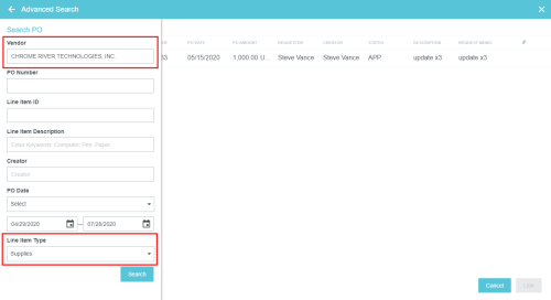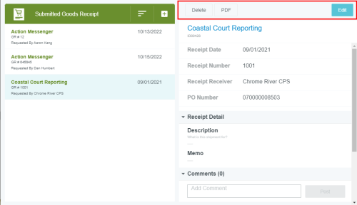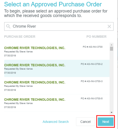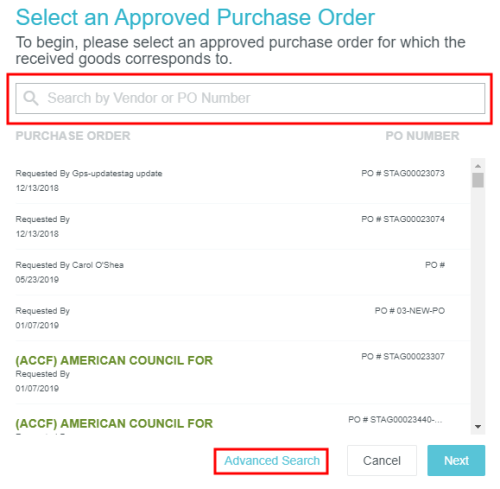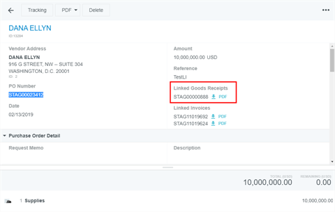 Créer et gérer les entrées de marchandises Le module de réception Emburse Enterprise vous permet de suivre la réception des articles acquis via un bon de commande Emburse Enterprise. Créer un nouveau reçu de marchandises 1. Dans le tableau de bord, cliquez sur le bouton + CRÉER du ruban Reçus des marchandises. Vous pouvez également cliquer sur le bouton + dans le coin supérieur droit de la liste des reçus de marchandises envoyées. 2. Vous devrez sélectionner le bon de commande approuvé auquel les marchandises reçues correspondent. Recherche rapide : utilisez la zone de recherche en haut de la liste pour effectuer une recherche par numéro de fournisseur ou de bon de commande Recherche avancée : cliquez sur RECHERCHE AVANCÉE en bas pour affiner la recherche selon divers critères. Lorsque vous avez trouvé le bon de commande souhaité dans Recherche rapide, mettez-le en surbrillance et cliquez sur SUIVANT. Alternativement, une recherche avancée est particulièrement utile si votre organisation a de nombreux bons de commande pour le même fournisseur. Saisissez les critères souhaités et cliquez sur RECHERCHER. Notez que le fournisseur et le type d’article sont requis pour exécuter une recherche. Une fois que vous avez trouvé le bon de commande souhaité via Recherche avancée, cliquez sur LIEN. 3. Vous serez amené(e) à un reçu de marchandises vierge avec le fournisseur prérempli. Cliquez sur MODIFIER. 4. Remplissez autant de détails que souhaité; seulement la date de réception et le numéro de réception sont requis. Date de réception Numéro de reçu Destinataire du reçu : Par défaut, il s’agit de l’utilisateur connecté créant le reçu de marchandises. Utilisez le sélecteur de personne pour choisir un autre utilisateur. Description Mémo Commentaires 5. La section Éléments reçus est automatiquement remplie avec les éléments du bon de commande associé, vous permettant d’enregistrer combien de chaque élément ont été reçus. Si vous avez reçu chaque type d’article sur le BC, cliquez sur NUMÉRO DE LIGNE pour tous les sélectionner. Sinon, cochez les cases à côté de chaque type d’article que vous avez reçu et entrez la quantité totale reçue dans les cases QTÉ correspondantes. Appuyez ensuite sur ENREGISTRER. Si vous saisissez un nombre supérieur au total du BC, un message d’avertissement s’affiche. Cependant, le système vous permettra d’enregistrer le nombre le plus élevé afin que vous puissiez documenter les situations où vous recevez plus que la quantité demandée sur le BC. 6. Lorsque vous avez documenté toutes les marchandises reçues, cliquez sur SOUMETTRE. Si vous n’avez pas reçu toutes les marchandises demandées sur le bon de commande, soumettez-en un pour le montant que vous avez reçu et créez des reçus de marchandises supplémentaires à mesure que les articles restants arrivent. 7. Le reçu de marchandises apparaîtra maintenant dans votre liste de reçus de marchandises soumis. 8. Vous pouvez également afficher le rapport PDF de tout reçu de marchandises lié à un BC en cliquant sur la flèche bleue de téléchargement à côté du numéro de reçu de marchandises sur l’écran de prévisualisation du BC. Affichage, édition et suppression des reçus de marchandises soumis Cliquez une fois sur le reçu de marchandises souhaité dans la liste pour afficher un résumé. Cliquez sur MODIFIER pour apporter des modifications. Cliquez sur PDF pour afficher le rapport complet du reçu de marchandises en PDF. Cliquez sur SUPPRIMER pour supprimer le reçu de marchandise. Attribution de lignes Reçu des marchandises sur les factures Les clients utilisant le module Reçu des marchandises avec une correspondance à trois étapes et un PGI qui exige une relation spécifique d’une ligne Reçu des marchandise et une ligne Facture peuvent réconcilier les données Reçu des marchandises au niveau de la ligne sur la facture en attribuant toute ligne Reçu des marchandises associée avec un bon de travail joint à une ligne Facture via le menu déroulant Correspondance de ligne de reçu. Cet article vous a-t-il été utile ? Oui Non