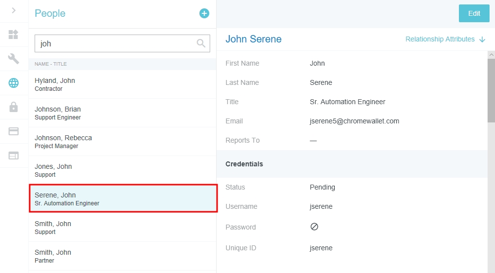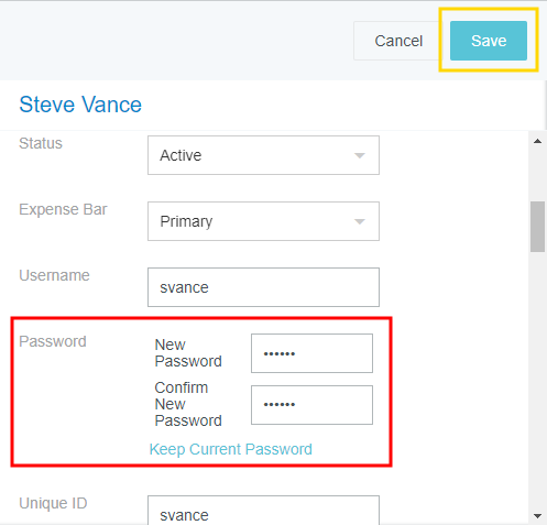 Écran d’administration du personnel L’écran d’administration du personnel permet aux utilisateurs disposant de privilèges d’administration d’ajouter des utilisateurs et de mettre à jour les options et les permissions des utilisateurs. Sélectionnez Paramètres administrateur > Données de référence > Personnes. Afficher le dossier d’une personne Pour afficher les informations d’un utilisateur, tapez son nom, son titre ou son nom d’utilisateur en partie ou en entier dans le champ de recherche. Cliquez sur l’utilisateur souhaité pour afficher ses informations. Vous pouvez également parcourir la liste. Chaque fois que vous atteignez le bas de la liste, plus de résultats sont chargés. Cliquez sur ATTRIBUTS DE RELATION pour accéder aux privilèges et rôles de l’utilisateur dans le système Emburse Enterprise. Ajouter un nouvel utilisateur Cliquez sur le bouton bleu + et remplissez les informations de l’utilisateur. Vous devrez entrer un mot de passe lors de la création d’un nouvel utilisateur. Lorsqu’un nouvel utilisateur accède à son compte avec ce mot de passe, il peut ensuite créer son propre mot de passe à partir du menu Settings. Tous les nouveaux utilisateurs doivent être créés avec un statut « En attente ». Cela déclenche l’invite de réinitialisation du mot de passe lorsqu’ils se connectent pour la première fois. Ils seront « Actif » une fois qu’ils seront connectés. Afin de définir manuellement le statut de l’utilisateur, vous devez d’abord le créer en tant que « En attente », puis cliquer sur ENREGISTRER et enfin sur MODIFIER pour rouvrir le profil de l’utilisateur. Modifier les options d’un utilisateur Pour modifier l’enregistrement personnel d’un utilisateur, cliquez sur MODIFIER dans le coin supérieur droit. À noter que les utilisateurs ne peuvent pas modifier leur propre dossier. Les options de configuration qui s’affichent sont déterminées par votre entreprise. Vous trouverez ci-dessous une liste des options les plus courantes. Prénom Nom de famille Title :Titre de l’utilisateur dans l’entreprise. E-mail :Adresse de courrier électronique de l’utilisateur. À noter qu’elle ne peut être remplacée par une adresse courriel déjà enregistrée comme adresse supplémentaire de l’utilisateur. Relève de : Superviseur de l’utilisateur. Statut : Statut du compte de l’utilisateur. En attente : Le dossier de l’utilisateur a été créé, mais ce dernier ne s’est pas encore connecté à l’application. Le statut passe à « Actif » après la première connexion. Suppressions : Supprimé : indique qu’un utilisateur ne fait plus partie de votre organisation. Leurs données seront toujours disponibles pour les rapports et les délégués spéciaux ayant les autorisations requises pourront utiliser la fonction « Get Departed » pour accéder à leur tableau de bord en tant que délégué. Vous pouvez également réactiver l’utilisateur. Désactivé : cette option purge complètement un utilisateur du système ; par exemple, vous avez créé un utilisateur test ou envoyé un flux incorrectement et vous voulez que le système agisse comme si l’utilisateur n’existait pas. Il n’est pas recommandé de l’utiliser avec des utilisateurs qui quittent l’entreprise. Actif : L’utilisateur peut accéder à Emburse Enterprise. Interrompu : ce statut ne doit pas être utilisé. Nom d’utilisateur : L’ID utilisé pour se connecter à Emburse Enterprise. Mot de passe : Mot de passe de l’utilisateur pour l’application Emburse Enterprise. ID Unique : l’ID entreprise unique de l’utilisateur, qui peut être le même que le nom d’utilisateur. Identifiant de l’utilisateur pour l’interaction et Nom de l’interaction : les identifiants d’interaction de l’utilisateur permettant l’intégration avec le CRM (utilisés conjointement avec les types de dépenses qui ont un sélecteur d’invités). Autorisations : Cette option permet de contrôler le niveau d’accès de l’utilisateur aux diverses fonctionnalités d’Emburse Enterprise. Administrateur : L’utilisateur peut accéder à la zone Paramètres d’administration d’Emburse Enterprise. Recherche limitée sur le réseau : cochez cette case pour éviter que la liste des allocations de l’entreprise ne soit téléchargée et stockée sur l’ordinateur de l’utilisateur. Avant de se connecter directement au serveur Emburse Enterprise, l’utilisateur sera invité à saisir le numéro d’allocation (plutôt qu’à le sélectionner dans une liste) dans l’application pour rechercher le dossier approprié. Copier les attributs dépenses : cochez cette case si vous voulez que chaque nouvelle ligne d’élément ajoutée dans un rapport de dépenses affiche automatiquement l’objectif d’affaires et les autres données d’en-tête de la ligne d’élément précédemment ajoutée. Super délégué : cochez cette case pour donner à l’utilisateur la possibilité de déléguer une tâche à n’importe quel utilisateur de l’entreprise. Verrouillé (aucune mise à jour du flux) : cochez cette case pour éviter qu’un dossier ne soit touché par des modifications ou des suppressions dans le flux de personnes. Vous pourrez continuer de gérer les dossiers de personnes verrouillées, même s’ils ne sont pas inclus dans le flux, au moyen de l’écran d’administration du personnel. Langue : sélectionnez la langue de préférence de l’utilisateur afin que le contenu de l’application s’affiche automatiquement dans cette langue. Format de la date : Choisissez entre le format de date MM/JJ/AAAA (p. ex. 01/02/2020 pour le 2 janvier 2020) et JJ/MM/AAAA (p. ex. 02/01/2020 pour le 2 janvier 2020). Format de la devise : choisissez entre le format de devise ###,###.00 (p. ex. 123,456.78 $) et ###.###,00 (p. ex., 123.456,78 $). Format du courriel : déterminez votre préférence concernant les rapports et les notificat