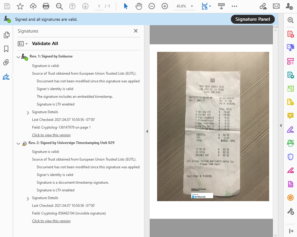 Archivage de reçus numériques Pour les clients qui aimeraient adopter l’approche sans papier en France, au Japon, en Espagne ou en Hongrie, et se conformer aux législations nationales concernant les reçus numériques, nous offrons la possibilité d’enregistrer les reçus dans Emburse Enterprise pour qu’ils soient horodatés et archivés. Ceci élimine le besoin de garder une copie papier du reçu à des fins d’impôts ou autre. Notre service d’archivage numérique Emburse (eIDAS) offre la possibilité de contrôler les images que les utilisateurs peuvent téléverser en fonction de la méthode de capture d’images. Dans ces pays, les images numériques doivent être contrôlées par Emburse Enterprise, de la capture à l’archivage, afin d’être considérées comme vérifiées. Si votre entreprise possède notre configuration recommandée, lorsque des utilisateurs d’archivage numérique tenteront de téléverser une image non créée par la caméra dans Emburse Enterprise sur un navigateur mobile, CR SNAP, l’application Emburse Enterprise Mobile ou l’application Chrome River, Emburse Enterprise les avertira que le téléversement n’est pas autorisé. Les reçus PDF et HTML de folio d’hôtel créés numériquement par le fournisseur sont permis, mais aucune image créée par ou partagée avec l’utilisateur n’est permise, en raison de la possibilité pour l’utilisateur de les modifier. au Japon, les images numériques doivent être capturées avec une qualité minimale de 3,88 mégapixels à partir d’une caméra ou de 200 ppp à partir d’un scanner. Les administrateurs peuvent préciser les sources d’images qui seront permises par Emburse Enterprise et si elles seront ou non envoyées à notre service d’archivage numérique avec une copie horodatée électroniquement. Ils peuvent aussi préciser quels utilisateurs seront touchés par les critères, selon leur emplacement en matière de déclaration de revenus. Les images correctement téléversées sont alors électroniquement scellées à l’aide de méthodes approuvées par les organismes réglementaires suivants : France : eIDAS et ANSSI Japon : JADAC Hongrie : AEAT Espagne : AEAT Les versions avec sceau des reçus se trouvent sur l’écran d’administration de Demander des reçus numériques. Les administrateurs peuvent exiger une ou plusieurs images pour le rapport afin de recevoir par courriel un fichier ZIP contenant tous les reçus. Pour l’Espagne et la Hongrie, nous capturons et scellons également les données des lignes de dépenses au format XML pour chaque reçu, qui est inclus dans des dossiers séparés à l’intérieur du fichier ZIP. Si vous souhaitez exploiter cette fonctionnalité, veuillez communiquer avec votre gestionnaire de la réussite des clients d’Emburse Enterprise ou écrire à csm@chromeriver.com. Cet article vous a-t-il été utile ? Oui Non