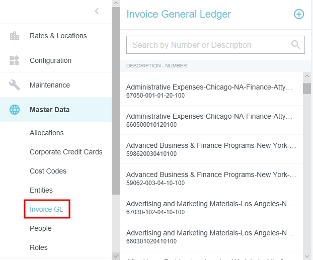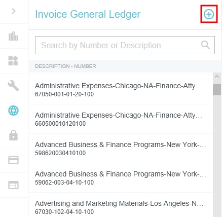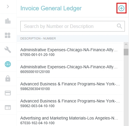 Écran d'administration du Grand livre général (GLG) des factures Les administrateurs disposant des permissions appropriées peuvent consulter, ajouter et modifier les enregistrements du GLG des factures en utilisant l'écran d'administration du GLG des factures. Cliquez sur PARAMÈTRES ADMINISTRATEUR > DONNÉES DE RÉFÉRENCE > FACTURE GL. Modifier les GLG de la facture Utilisez la zone de recherche pour commencer à entrer le numéro ou la description du GLG. Cliquez sur le GL souhaité pour afficher ses détails, puis cliquez sur MODIFIER. Tous les aspects du GLG peuvent être modifiés, à l'exception du numéro du GLG, qui ne peut être modifié que pendant le processus de création du nouveau GLG. Utilisez le menu déroulant d'état pour activer ou désactiver le GLG. Cliquez sur ENREGISTRER. Créer un nouveau GLG de facture Pour créer une nouvelle facture GL, cliquez sur le bouton bleu plus à droite de « Grand livre général des factures ». Saisissez les détails et cliquez sur ENREGISTRER. Vous pouvez également cliquer sur ANNULER pour quitter sans créer la nouvelle facture GL. Cet article vous a-t-il été utile ? Oui Non