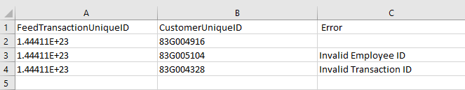 Supprimer et réassigner les transactions L'écran de suppression et de réassignation des transactions vous permet de supprimer les transactions par carte de crédit non utilisées d'un utilisateur ou de transférer des transactions d'un utilisateur à un autre. Cela peut notamment être utile lorsqu'un utilisateur quitte l'entreprise avant de soumettre toutes ses dépenses. Cliquez sur PARAMÈTRES ADMINISTRATEUR > TRANSACTIONS > SUPPRIMER et RÉASSIGNER. Supprimer les transactions de carte de crédit Remarque : Par mesure de sécurité, les administrateurs ne peuvent supprimer leurs propres transactions. 1. À l'aide des filtres, repérez les transactions que vous cherchez. 2. Sélectionnez la ou les transactions et cliquez sur SUPPRIMER. Vous pouvez également faire glisser les en-têtes de colonne dans la barre bleue afin de regrouper les résultats selon certains critères. 3. Il vous sera demandé de confirmer la suppression en entrant le mot « SUPPRIMER » dans la case. Cliquez ensuite sur SUPPRIMER. Réassigner les dépenses Les administrateurs peuvent sélectionner des utilisateurs (à l'exception de ceux dont l'état indique « Désactivé ») pour visualiser leurs transactions actives qui ne figurent pas dans un rapport de dépenses. Vous pouvez sélectionner tout ou partie des transactions et les déplacer vers un nouvel utilisateur. Remarque : Remarque : la réattribution d'une transaction faisant partie d'un ensemble fusionné entraînera la réattribution de toutes les transactions de cet ensemble. 1. À l'aide des filtres, repérez les transactions que vous cherchez. 2. Sélectionnez la ou les transactions et cliquez sur RÉASSIGNER. 3. Dans la fenêtre contextuelle, utilisez la zone de recherche pour trouver la personne à qui vous souhaitez réattribuer les transactions. Cliquez ensuite sur RÉASSIGNER. Modifier la description de la transaction Le bouton MODIFIER LA TRANSACTION vous permet de modifier la description d'une transaction. Il vous permet notamment d'ajouter une explication si une ancienne transaction demeure inutilisée. Par exemple, dans le cas où le vol d'un utilisateur serait annulé, ce dernier pourrait choisir d'attendre l'achat de nouveaux billets avant d'inscrire l'information à son rapport de dépenses. 1. Sélectionnez la ou les transactions souhaitées et cliquez sur MODIFIER LA DESCRIPTION. 2. Saisissez la description et cliquez sur APPLIQUER. Toutes les transactions sélectionnées auront la même description. Transactions réaffectées en lot Pour les clients qui ont besoin de réaffecter de nombreuses transactions à plusieurs utilisateurs différents, le bouton de RÉAFFECTER EN BLOC permet aux administrateurs de téléverser un fichier .CSV contenant toutes les réaffectations plutôt que de sélectionner chacune manuellement. 1. Cliquez sur RÉAFFECTER EN BLOC. 2. L’écran contextuel contient les spécifications pour le fichier .CSV à téléverser : Le format de fichier doit être .CSV La première ligne doit être une ligne d’en-tête, définie comme Colonne A = FeedTransactionUniqueID Colonne B = CustomerUniqueID Réattribuer les lignes de détails doit contenir : Colonne A = ID unique de la transaction à réattribuer Colonne B = ID unique de l’employé auquel la transaction doit être attribuée Cliquez ici pour voir un exemple de fichier .CVS que vous pouvez personnaliser. 3. Une fois que le fichier .CSV est correctement formaté, cliquez sur TÉLÉVERSER et sélectionnez le fichier. 4. Dans la fenêtre contextuelle de confirmation de téléversement, vérifiez que le fichier correct a été sélectionné et cliquez sur TÉLÉVERSER. 5. La fenêtre contextuelle Résultats de la réattribution en bloc vous indiquera le nombre de transactions réattribuées avec succès et le nombre d’erreurs. 6. Cliquez sur TÉLÉCHARGER LES RÉSULTATS pour obtenir un fichier .CSV indiquant quelles transactions avaient des erreurs et quelles étaient les erreurs. Sample Bulk Reassign.csv96 octets Cet article vous a-t-il été utile ? Oui Non