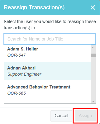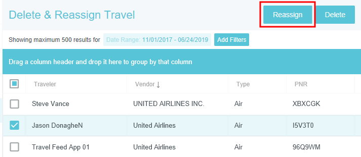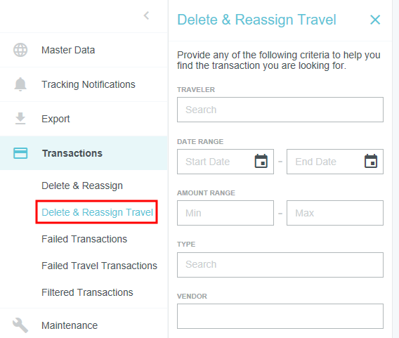 Supprimer et réassigner les transactions de déplacement L'écran de suppression et de réassignation des transactions de déplacement vous permet de supprimer les transactions de déplacement non utilisées d'un utilisateur ou de transférer des transactions de déplacement d'un utilisateur à un autre. Cela peut notamment être utile lorsqu'un utilisateur quitte l'entreprise avant de soumettre toutes ses dépenses. Cliquez sur PARAMÈTRES ADMINISTRATEUR > TRANSACTIONS > SUPPRIMER et RÉASSIGNER LE DÉPLACEMENT. Supprimer les transactions de déplacement Remarque : Par mesure de sécurité, les administrateurs ne peuvent supprimer leurs propres transactions. [1] À l'aide des filtres, repérez les transactions que vous cherchez. [2] Sélectionnez la ou les transactions et cliquez sur SUPPRIMER. Vous pouvez également faire glisser les en-têtes de colonne dans la barre bleue afin de regrouper les résultats selon certains critères. [3] Il vous sera demandé de confirmer la suppression en entrant le mot « SUPPRIMER » dans la case. Cliquez ensuite sur SUPPRIMER. Réassigner les transactions de déplacement Les administrateurs peuvent sélectionner des utilisateurs (à l'exception de ceux dont l'état indique « Désactivé ») pour visualiser leurs transactions de déplacement actives qui ne figurent pas dans un rapport de dépenses. Vous pouvez sélectionner tout ou partie des transactions et les déplacer vers un nouvel utilisateur. Remarque : Remarque : la réattribution d'une transaction de déplacement faisant partie d'un ensemble fusionné entraînera la réattribution de toutes les transactions de cet ensemble. [1] À l'aide des filtres, repérez les transactions que vous cherchez. [2] Sélectionnez la ou les transactions et cliquez sur RÉASSIGNER. [3] Dans la fenêtre contextuelle, utilisez la zone de recherche pour trouver la personne à qui vous souhaitez réattribuer les transactions. Cliquez ensuite sur ATTRIBUER. Cet article vous a-t-il été utile ? Oui Non